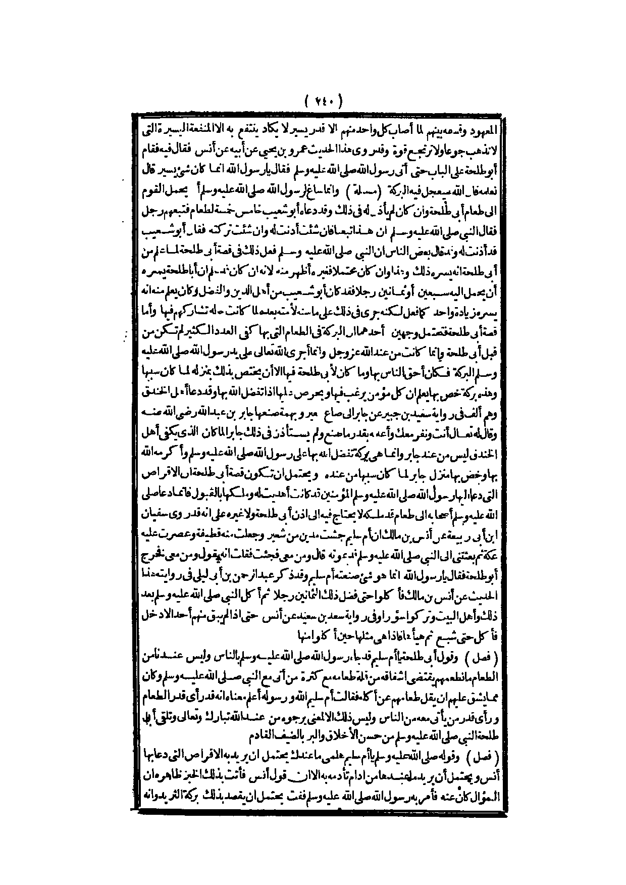 أَحَدُهُمَا: أَنَّ الْبَرَكَةَ فِي الطَّعَامِ الَّتِي بِهَا كَفَى الْعَدَدَ الْكَثِيرَ لَمْ تَكُنْ مِنْ قِبَلِ أَبِي طَلْحَةَ وَإِنَّمَا كَانَتْ مِنْ عِنْدِ اللَّهِ عَزَّ وَجَلَّ وَإِنَّمَا أَجْرَى اللَّهُ - تَعَالَى - عَلَى يَدِ رَسُولِ اللَّهِ - صَلَّى اللَّهُ عَلَيْهِ وَسَلَّمَ - الْبَرَكَةَ فَكَانَ أَحَقَّ النَّاسِ بِهَا وَمَا كَانَ لِأَبِي طَلْحَةَ فِيهَا إلَّا أَنْ يَخْتَصَّ بِذَلِكَ بِمَنْزِلِهِ لَمَّا كَانَ سَبَبَهَا وَهَذِهِ بَرَكَةٌ خُصَّ بِهَا يُعْلَمُ أَنَّ كُلَّ مُؤْمِنٍ يَرْغَبُ فِيهَا وَيَحْرِصُ عَلَيْهَا إذَا تَفَضَّلَ اللَّهُ بِهَا وَقَدْ دَعَا أَهْلَ الْخَنْدَقِ وَهُمْ أَلْفٌ فِي رِوَايَةِ سَعِيدِ بْنِ جُبَيْرٍ عَنْ جَابِرٍ إلَى صَاعِ بَعِيرٍ وَبَهِيمَةٍ صَنَعَهَا جَابِرُ بْنُ عَبْدِ اللَّهِ - رَضِيَ اللَّهُ عَنْهُ - وَقَالَ لَهُ: تَعَالَ أَنْتَ وَنَفَرٌ مَعَك، وَأَعْلَمَهُ بِقَدْرِ مَا صَنَعَ وَلَمْ يَسْتَأْذِنْ فِي ذَلِكَ جَابِرًا لَمَّا كَانَ الَّذِي يَكْفِي أَهْلَ الْخَنْدَقِ لَيْسَ مِنْ عِنْدِ جَابِرٍ وَإِنَّمَا هِيَ بَرَكَةٌ تَفَضَّلَ اللَّهُ بِهَا عَلَى رَسُولِ اللَّهِ - صَلَّى اللَّهُ عَلَيْهِ وَسَلَّمَ - وَأَكْرَمَهُ اللَّهُ بِهَا وَخَصَّ بِهَا مَنْزِلَ جَابِرٍ لَمَّا كَانَ سَبَبُهَا مِنْ عِنْدِهِ وَيَحْتَمِلُ أَنْ تَكُونَ قِصَّةُ أَبِي طَلْحَةَ أَنَّ الْأَقْرَاصَ الَّتِي دَعَا إلَيْهَا رَسُولُ اللَّهِ - صَلَّى اللَّهُ عَلَيْهِ وَسَلَّمَ - الْمُؤْمِنِينَ قَدْ كَانَتْ أُهْدِيَتْ لَهُ وَمَلَكَهَا بِالْقَبُولِ فَإِنَّمَا دَعَا - صَلَّى اللَّهُ عَلَيْهِ وَسَلَّمَ - أَصْحَابَهُ إلَى طَعَامٍ قَدْ مَلَكَهُ لَا يَحْتَاجُ فِيهِ إلَى إذْنِ أَبِي طَلْحَةَ وَلَا غَيْرِهِ عَلَى أَنَّهُ قَدْ رَوَى سُفْيَانُ بْنُ أَبِي رَبِيعَةَ عَنْ أَنَسِ بْنِ مَالِكٍ أَنَّ أُمَّ سُلَيْمٍ جَشَّتْ مُدَّيْنِ مِنْ شَعِيرٍ وَجَعَلَتْ مِنْهُ قَطِيفَةً وَعَصَرَتْ عَلَيْهِ عُكَّةً، ثُمَّ بَعَثَتْنِي إلَى النَّبِيِّ - صَلَّى اللَّهُ عَلَيْهِ وَسَلَّمَ - فَدَعَوْته قَالَ: وَمَنْ مَعِي فَجِئْت فَقُلْت: إنَّهُ يَقُولُ وَمَنْ مَعِي فَخَرَجَ أَبُو طَلْحَةَ فَقَالَ: يَا رَسُولَ اللَّهِ إنَّمَا هُوَ شَيْءٌ صَنَعَتْهُ أُمُّ سُلَيْمٍ.