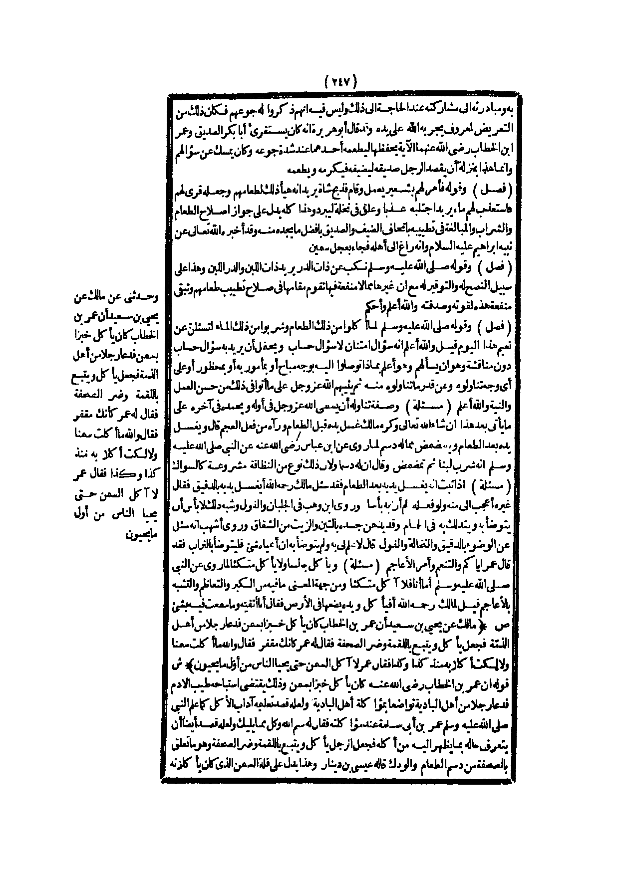 (ص) : (مَالِكٌ عَنْ يَحْيَى بْنِ سَعِيدٍ أَنَّ عُمَرَ بْنَ الْخَطَّابِ كَانَ يَأْكُلُ خُبْزًا بِسَمْنٍ فَدَعَا رَجُلًا مِنْ أَهْلِ الذِّمَّةِ فَجَعَلَ يَأْكُلُ وَيَتْبَعُ بِاللُّقْمَةِ وَضَرَ الصَّحْفَةِ فَقَالَ لَهُ عُمَرُ: كَأَنَّك مُقْفِرٌ فَقَالَ: وَاَللَّهِ مَا أَكَلْت سَمْنًا وَلَا لُكْت أَكْلًا بِهِ مُنْذُ كَذَا وَكَذَا فَقَالَ عُمَرُ لَا آكُلُ السَّمْنَ حَتَّى يَحْيَا النَّاسُ مِنْ أَوَّلِ مَا يَحْيَوْنَ) .