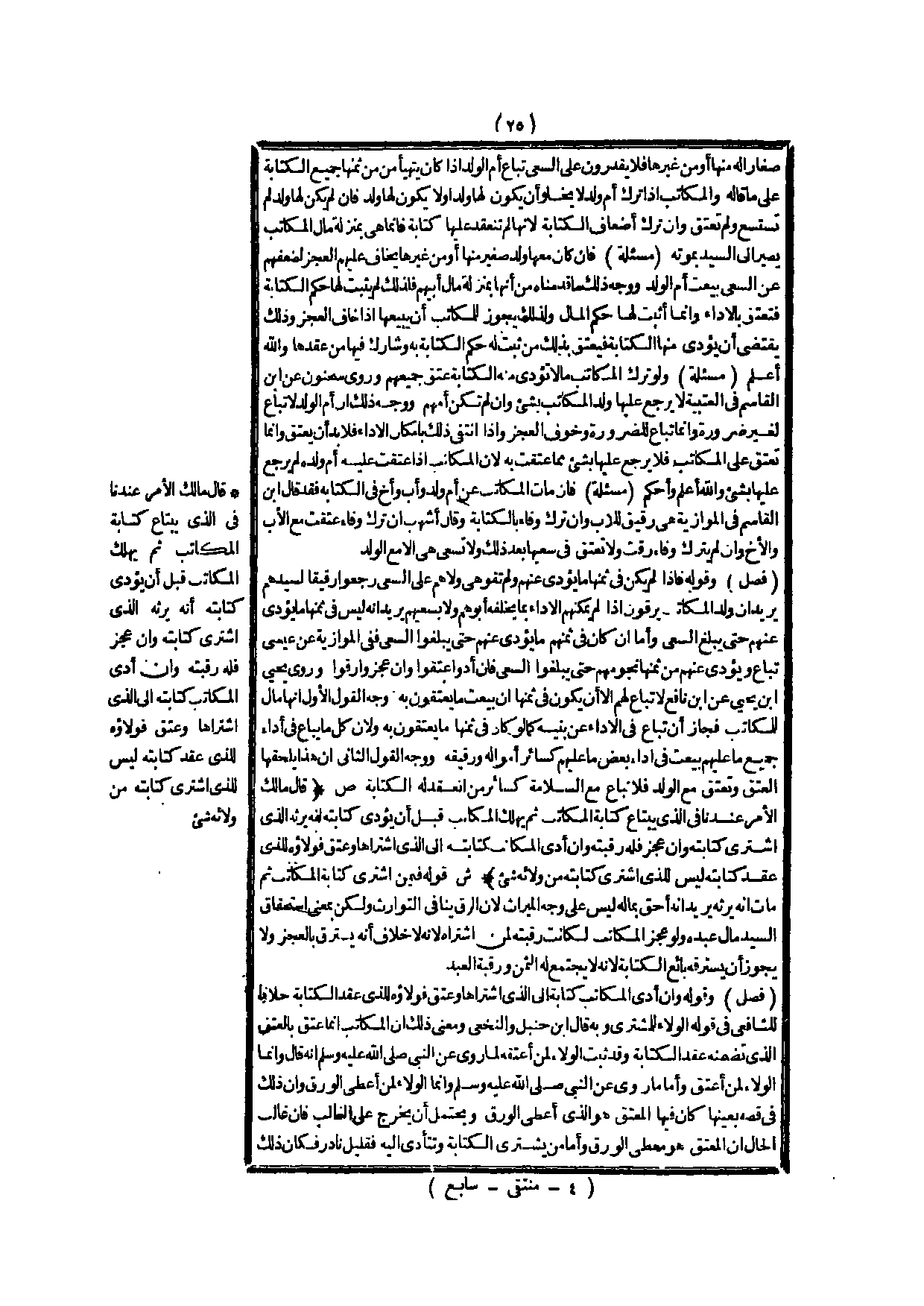 ـــــــــــــــــــــــــــــQصِغَارًا لَهُ مِنْهَا أَوْ مِنْ غَيْرِهَا فَلَا يَقْدِرُونَ عَلَى السَّعْيِ تُبَاعُ أُمُّ الْوَلَدِ إذَا كَانَ يُتَهَيَّأُ مِنْ ثَمَنِهَا جَمِيعُ الْكِتَابَةِ عَلَى مَا قَالَهُ وَالْمُكَاتَبُ إذَا تَرَكَ أُمَّ وَلَدٍ لَا يَخْلُو أَنْ يَكُونَ لَهَا وَلَدٌ أَوْ لَا يَكُونُ لَهَا وَلَدٌ؛ فَإِنْ لَمْ يَكُنْ لَهَا وَلَدٌ لَمْ تُسْتَسْعَ وَلَمْ تَعْتِقْ وَإِنْ تَرَكَ أَضْعَافَ الْكِتَابَةِ؛ لِأَنَّهَا لَمْ تَنْعَقِدْ عَلَيْهَا كِتَابَةٌ فَإِنَّمَا هِيَ بِمَنْزِلَةِ مَالِ الْمُكَاتَبِ يَصِيرُ إلَى السَّيِّدِ بِمَوْتِهِ.