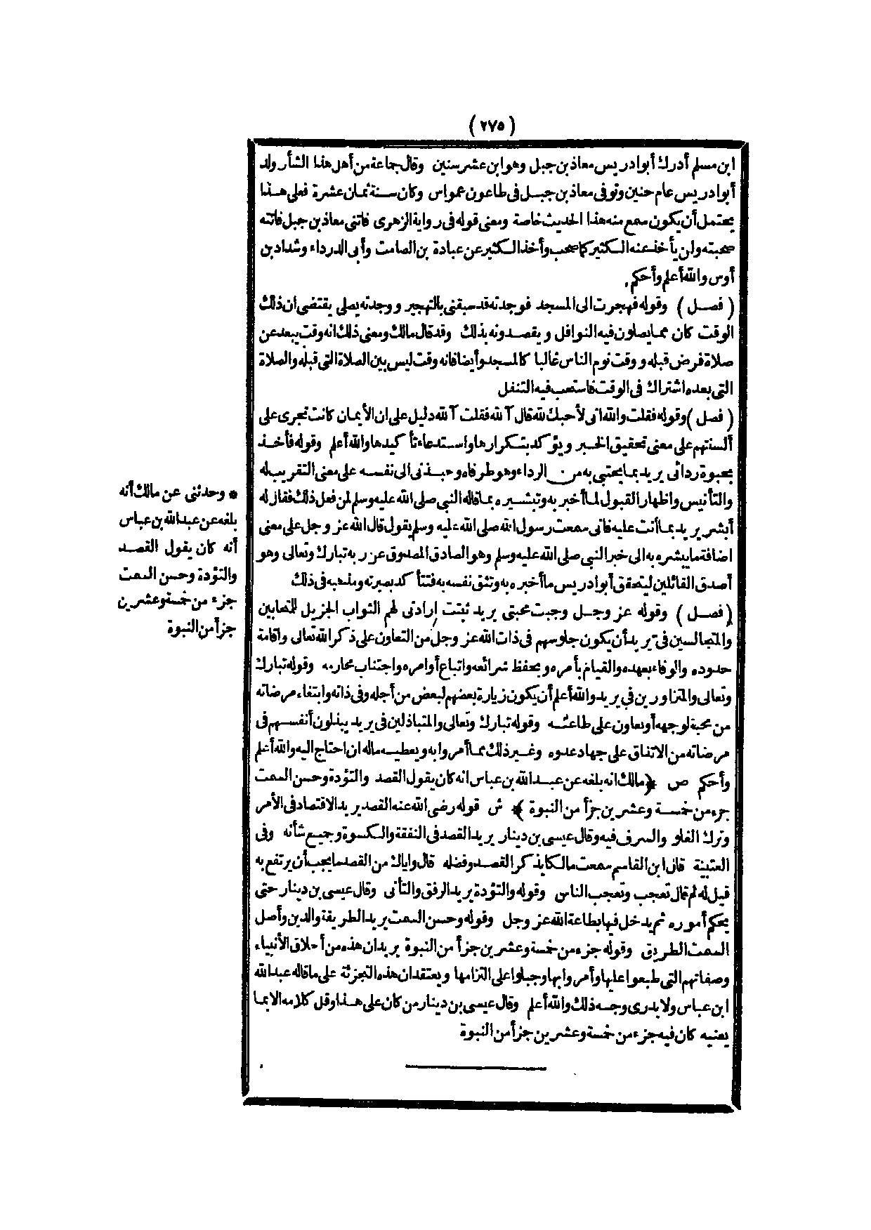 (ص) : (مَالِكٌ أَنَّهُ بَلَغَهُ عَنْ عَبْدِ اللَّهِ بْنِ عَبَّاسٍ أَنَّهُ كَانَ يَقُولُ الْقَصْدُ وَالتُّؤَدَةُ وَحُسْنُ السَّمْتِ جُزْءٌ مِنْ خَمْسَةٍ وَعِشْرِينَ جُزْءًا مِنْ النُّبُوَّةِ) .