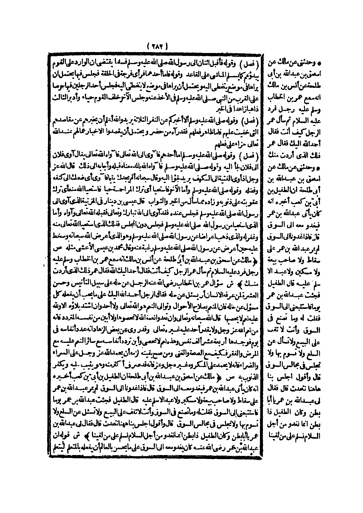 (ص) : (مَالِكٌ عَنْ إِسْحَاقَ بْنِ عَبْدِ اللَّهِ بْنِ أَبِي طَلْحَةَ عَنْ أَنَسِ بْنِ مَالِكٍ أَنَّهُ سَمِعَ عُمَرَ بْنَ الْخَطَّابِ وَسَلَّمَ عَلَيْهِ رَجُلٌ فَرَدَّ عَلَيْهِ السَّلَامَ ثُمَّ سَأَلَ عُمَرُ الرَّجُلَ كَيْفَ أَنْتَ؟ فَقَالَ أَحْمَدُ: إلَيْك اللَّهَ، فَقَالَ عُمَرُ ذَلِكَ الَّذِي أَرَدْت مِنْك) (ص) : (مَالِكٌ عَنْ إِسْحَاقَ بْنِ عَبْدِ اللَّهِ بْنِ أَبِي طَلْحَةَ أَنَّ الطُّفَيْلَ بْنَ أُبَيِّ بْنِ كَعْبٍ أَخْبَرَهُ أَنَّهُ كَانَ يَأْتِي عَبْدَ اللَّهِ بْنَ عُمَرَ فَيَغْدُو مَعَهُ إلَى السُّوقِ قَالَ: فَإِذَا غَدَوْنَا إلَى السُّوقِ لَمْ يَمُرَّ عَبْدُ اللَّهِ بْنُ عُمَرَ عَلَى سَقَّاطٍ وَلَا صَاحِبِ بِيعَةٍ وَلَا مِسْكِينٍ وَلَا عَبْدٍ إلَّا سَلَّمَ عَلَيْهِ قَالَ الطُّفَيْلُ فَجِئْت عَبْدَ اللَّهِ بْنَ عُمَرَ يَوْمًا فَاسْتَتْبَعَنِي إلَى السُّوقِ فَقُلْت لَهُ وَمَا تَصْنَعُ فِي السُّوقِ وَأَنْتَ لَا تَقِفُ عَلَى الْبَيْعِ وَلَا تَسْأَلُ عَنْ السِّلَعِ وَلَا تَسُومُ بِهَا وَلَا تَجْلِسُ فِي مَجَالِسِ السُّوقِ قَالَ وَأَقُولُ: اجْلِسْ بِنَا هَهُنَا نَتَحَدَّثُ قَالَ فَقَالَ لِي عَبْدُ اللَّهِ بْنُ عُمَرَ يَا أَبَا بَطْنٍ وَكَانَ الطُّفَيْلُ ذَا بَطْنٍ إنَّمَا نَغْدُو مِنْ أَجْلِ السَّلَامِ نُسَلِّمُ عَلَى مَنْ لَقِيَنَا)