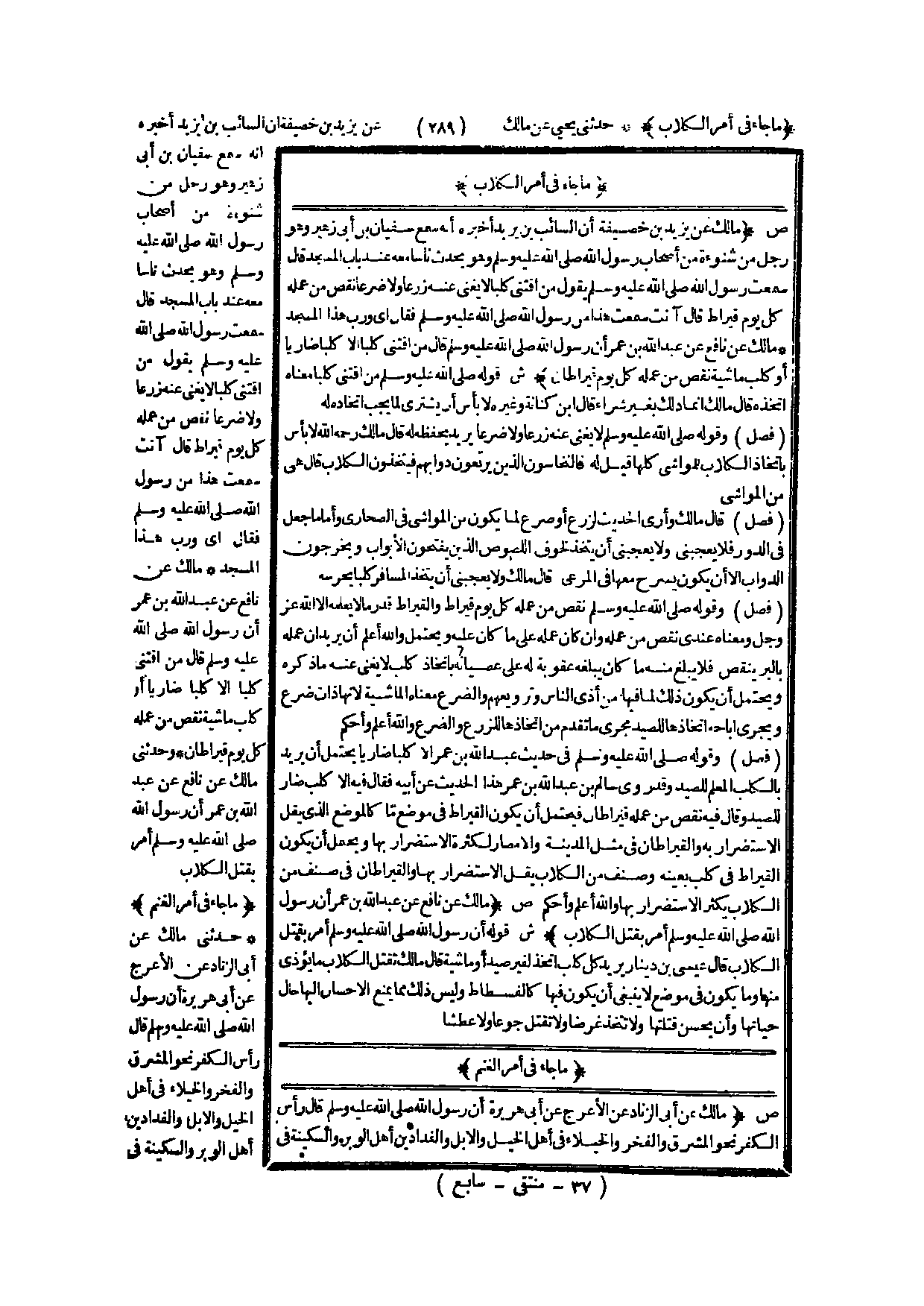(ص) : (مَالِكٌ عَنْ نَافِعٍ عَنْ عَبْدِ اللَّهِ بْنِ عُمَرَ «أَنَّ رَسُولَ اللَّهِ - صَلَّى اللَّهُ عَلَيْهِ وَسَلَّمَ - أَمَرَ بِقَتْلِ الْكِلَابِ» .