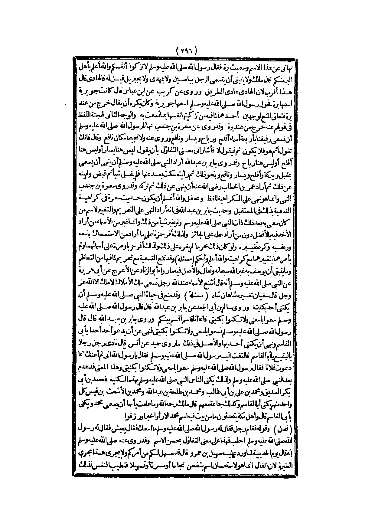 وَقَدْ رَوَى جَابِرُ بْنُ عَبْدِ اللَّهِ «أَرَادَ النَّبِيُّ - صَلَّى اللَّهُ عَلَيْهِ وَسَلَّمَ - أَنْ يَنْهَى أَنْ يُسَمَّى بِمُقْبِلٍ وَبِبَرَكَةَ وَأَفْلَحَ وَيَسَارٍ وَنَافِعٍ وَبِنَحْوِ ذَلِكَ ثُمَّ رَأَيْته سَكَتَ بَعْدُ عَنْهَا فَلَمْ يَقُلْ شَيْئًا ثُمَّ قُبِضَ وَلَمْ يَنْهَ عَنْ ذَلِكَ» ثُمَّ أَرَادَ عُمَرُ بْنُ الْخَطَّابِ - رَضِيَ اللَّهُ عَنْهُ - أَنْ يَنْهَى عَنْ ذَلِكَ ثُمَّ تَرَكَهُ.