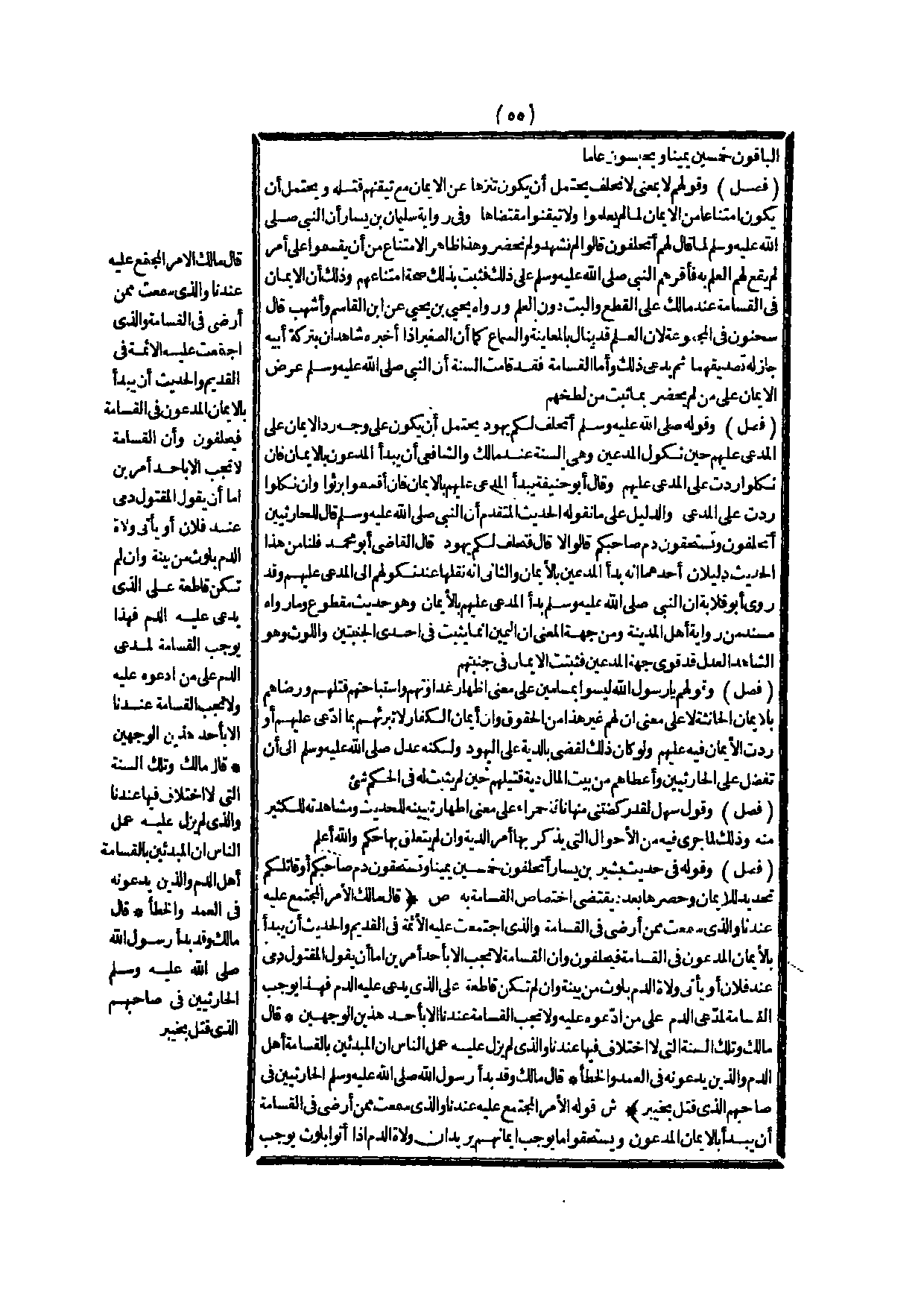 وَقَوْلُهُ فِي حَدِيثِ بُشَيْرِ بْنِ يَسَارٍ أَتَحْلِفُونَ خَمْسِينَ يَمِينًا وَتَسْتَحِقُّونَ دَمَ صَاحِبِكُمْ أَوْ قَاتِلِكُمْ تَحْدِيدٌ لِلْأَيْمَانِ وَحَصْرُهَا بِعَدَدٍ يَقْتَضِي اخْتِصَاصَ الْقَسَامَةِ بِهِ.