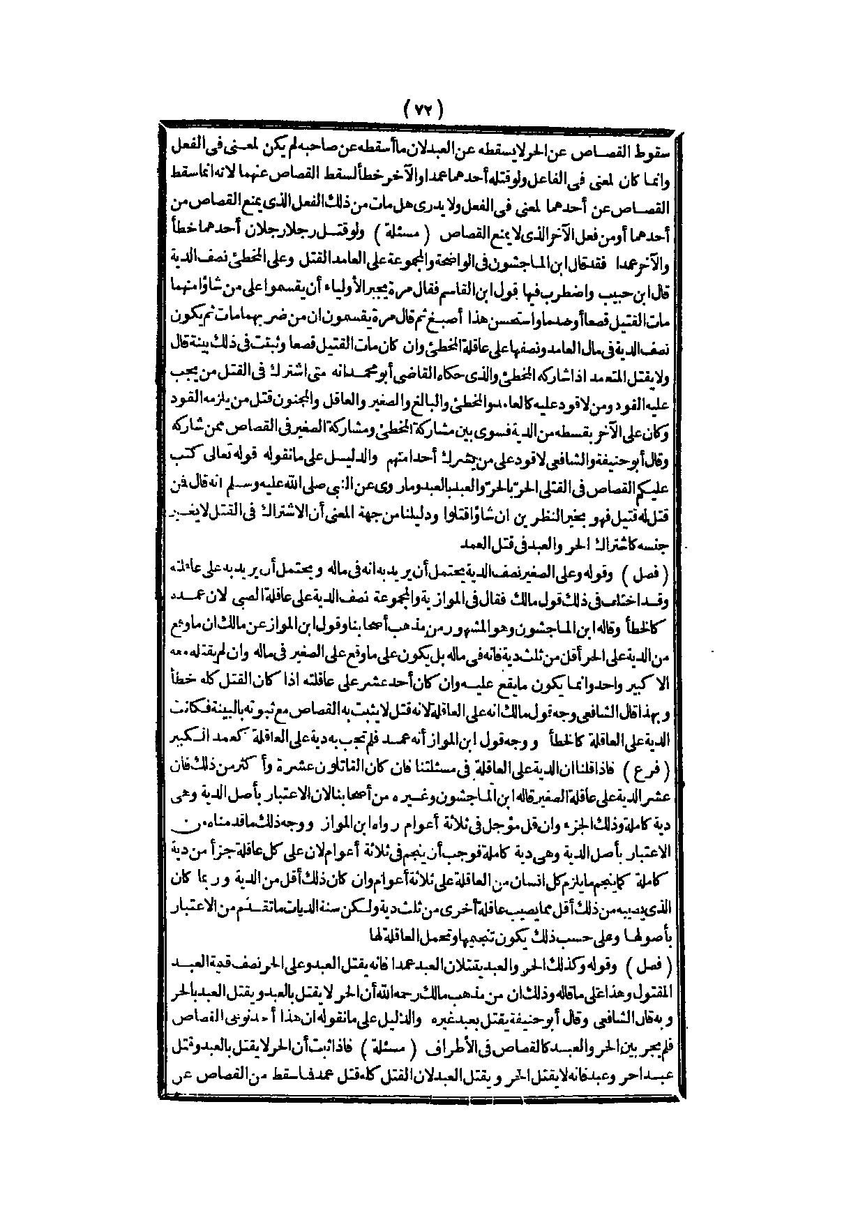 ـــــــــــــــــــــــــــــQسُقُوطَ الْقِصَاصِ عَنْ الْحُرِّ لَا يُسْقِطُهُ عَنْ الْعَبْدِ؛ لِأَنَّ مَا أَسْقَطَهُ عَنْ صَاحِبِهِ لَمْ يَكُنْ لِمَعْنًى فِي الْفِعْلِ، وَإِنَّمَا كَانَ لِمَعْنًى فِي الْفَاعِلِ، وَلَوْ قَتَلَهُ أَحَدُهُمَا عَمْدًا وَالْآخَرُ خَطَأً لَسَقَطَ الْقِصَاصُ عَنْهُمَا؛ لِأَنَّهُ إنَّمَا سَقَطَ الْقِصَاصُ عَنْ أَحَدِهِمَا لِمَعْنًى فِي الْفِعْلِ، وَلَا يُدْرَى هَلْ مَاتَ مِنْ ذَلِكَ الْفِعْلِ الَّذِي يَمْنَعُ الْقِصَاصَ مِنْ أَحَدِهِمَا أَوْ مِنْ فِعْلِ الْآخَرِ الَّذِي لَا يَمْنَعُ الْقِصَاصَ.