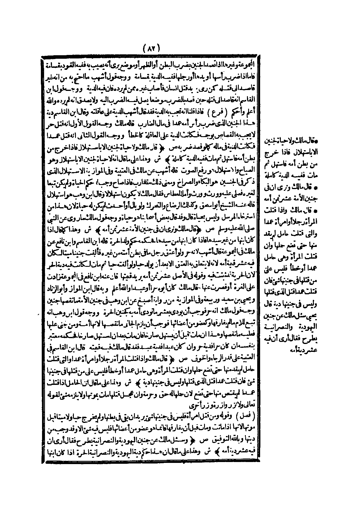 (ص) : (وَسُئِلَ مَالِكٌ عَنْ جَنِينِ الْيَهُودِيَّةِ وَالنَّصْرَانِيَّةِ يُطْرَحُ فَقَالَ أَرَى أَنَّ فِيهِ عُشْرَ دِيَةِ أُمِّهِ) .