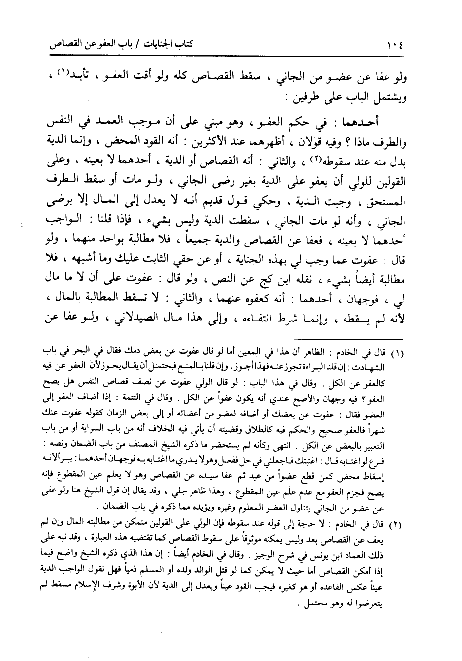 ولو عفا عن عضو من الجاني، سقط القصاص كله، ولو أقت العفو، تأبد، ويشتمل الباب على طرفين: أحدهما : في حكم العفو، وهو مبني على أن موجب العمد في النفس والطرف ماذا ؟ وفيه قولان، أظهرهما عند الاكثرين: أنه القود المحض، وإنما الدية بدل منه عند سقوطه، والثاني: أنه القصاص أو الدية، أحدهما لا بعينه، وعلى القولين للولي أن يعفو على الدية بغير رضى الجاني، ولو مات أو سقط الطرف المستحق، وجبت الدية، وحكي قول قديم أنه لا يعدل إلى المال إلا برضى الجاني، وأنه لو مات الجاني، سقطت الدية وليس بشئ، فإذا قلنا: الواجب أحدهما لا بعينه، فعفا عن القصاص والدية جميعا، فلا مطالبة بواحد منهما، ولو قال: عفوت عما وجب لي بهذه الجناية، أو عن حقي الثابت عليك وما أشبهه، فلا مطالبة أيضا بشئ، نقله ابن كج عن النص، ولو قال: عفوت على أن لا مال لي، فوجهان، أحدهما: أنه كعفوه عنهما، والثاني: لا تسقط المطالبة بالمال، لانه لم يسقطه، وإنما شرط انتفاءه، وإلى هذا مال الصيدلاني، ولو عفا عن