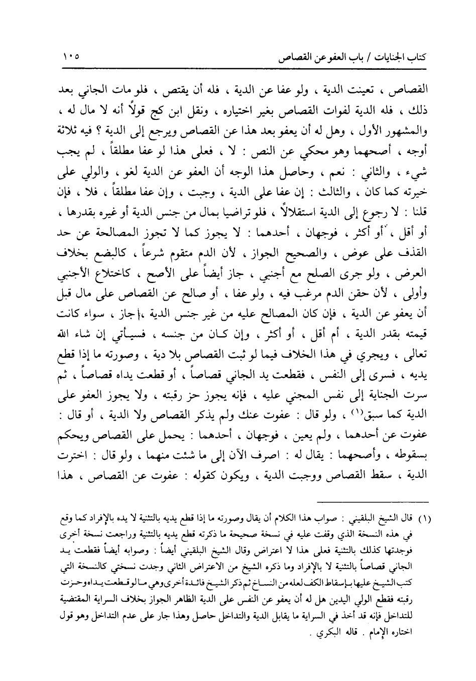 القصاص، تعينت الدية، ولو عفا عن الدية، فله أن يقتص، فلو مات الجاني بعد ذلك، فله الدية لفوات القصاص بغير اختياره، ونقل ابن كج قولا أنه لا مال له، والمشهور الاول، وهل له أن يعفو بعد هذا عن القصاص ويرجع إلى الدية ؟ فيه ثلاثة أوجه، أصحهما وهو محكي عن النص: لا، فعلى هذا لو عفا مطلقا، لم يجب شئ، والثاني: نعم، وحاصل هذا الوجه أن العفو عن الدية لغو، والولي على خيرته كما كان، والثالث: إن عفا على الدية، وجبت، وإن عفا مطلقا، فلا، فإن قلنا: لا رجوع إلى الدية استقلالا، فلو تراضيا بمال من جنس الدية أو غيره بقدرها، أو أقل، أو أكثر، فوجهان، أحدهما: لا يجوز كما لا تجوز المصالحة عن حد القذف على عوض، والصحيح الجواز، لان الدم متقوم شرعا، كالبضع بخلاف العرض، ولو جرى الصلح مع أجنبي، جاز أيضا على الاصح، كاختلاع الاجنبي وأولى، لان حقن الدم مرغب فيه، ولو عفا، أو صالح عن القصاص على مال قبل أن يعفو عن الدية، فإن كان المصالح عليه من غير جنس الدية، جاز، سواء كانت قيمته بقدر الدية، أم أقل، أو أكثر، وإن كان من جنسه، فسيأتي إن شاء الله تعالى، ويجري الخلاف فيما لو ثبت القصاص بلا دية، وصورته ما إذا قطع يديه، فسرى إلى النفس، فقطعت يد الجاني قصاصا، أو قطعت يداه قصاصا، ثم سرت الجناية إلى نفس المجني عليه، فإنه يجوز حز رقبته، ولا يجوز العفو على الدية كما سبق، ولو قال: عفوت عنك ولم يذكر القصاص ولا الدية، أو قال: عفوت عن أحدهما، ولم يعين، فوجهان، أحدهما: يحمل على القصاص ويحكم بسقوطه، وأصحهما: يقال له: اصرف الآن إلى ما شئت منهما، ولو قال: اخترت الدية، سقط القصاص ووجبت الدية، ويكون كقوله: عفوت عن القصاص، هذا