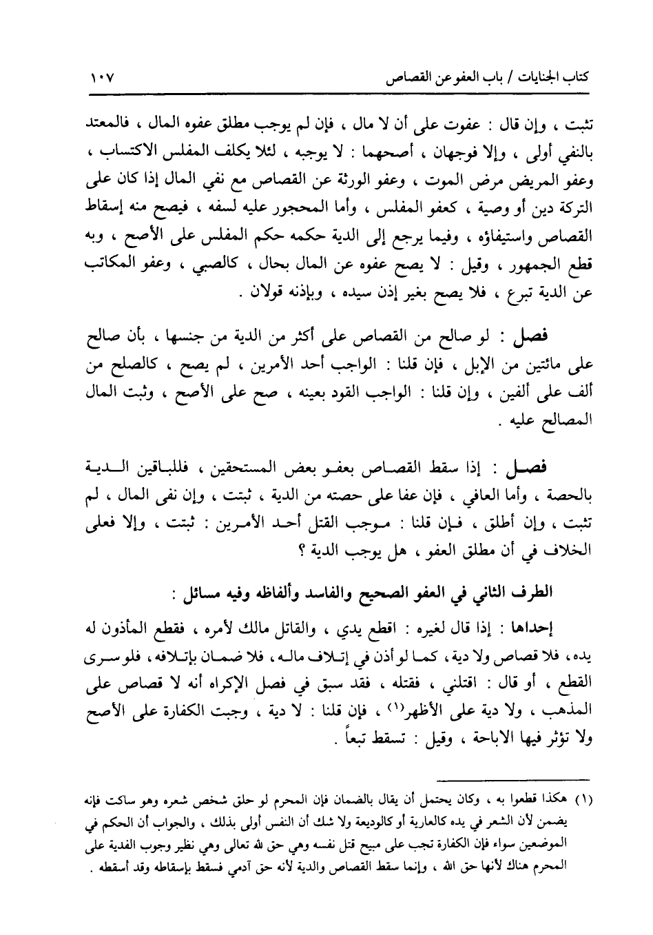 تثبت، وإن قال: عفوت على أن لا مال، فإن لم يوجب مطلق عفوه المال، فالمعتد بالنفي أولى، وإلا فوجهان، أصحهما: لا يوجبه، لئلا يكلف المفلس الاكتساب، وعفو المريض مرض الموت، وعفو الورثة عن القصاص مع نفي المال إذا كان على التركة دين أو وصية، كعفو المفلس، وأما الحجور عليه لسفه، فيصح منه إسقاط القصاص واستيفاؤه، وفيما يرجع إلى الدية حكمه حكم المفلس على الاصح، وبه قطع الجمهور، وقيل: لا يصح عفوه عن المال بحال، كالصبي، وعفو المكاتب عن الدية تبرع، فلا يصح بغير إذن سيده، وبإذنه قولان. فصل لو صالح من القصاص على أكثر من الدية من جنسها، بأن صالح على مائتين من الابل، فإن قلنا: الواجب أحد الامرين، لم يصح، كالصلح من ألف على ألفين، وإن قلنا: الواجب القود بعينه، صح على الاصح، وثبت المال المصالح عليه.