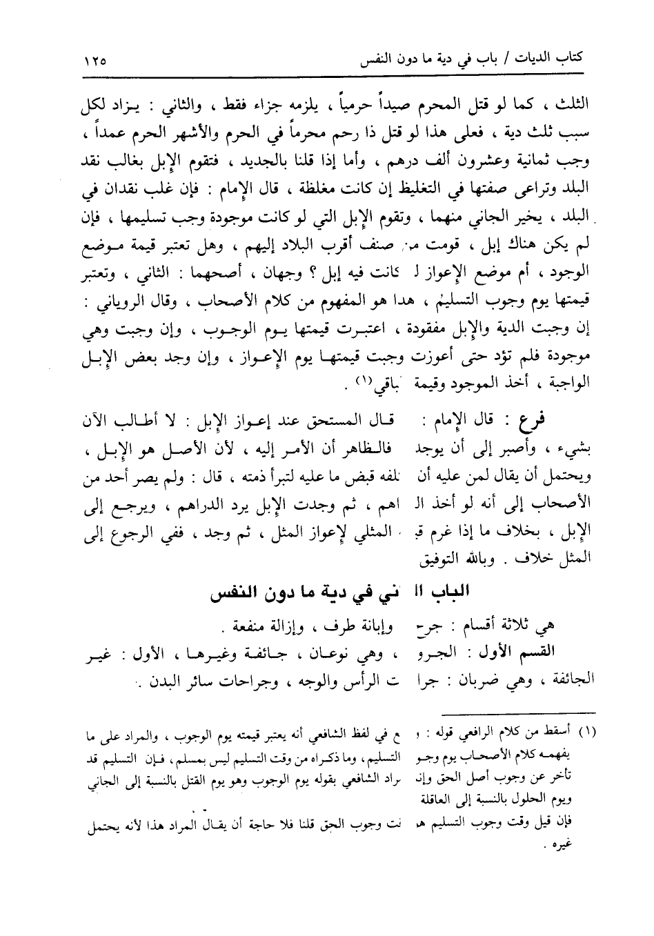 الباب الثاني : في دية ما دون النفس هي ثلاثة أقسام: جرح، وإبانة طرف، وإزالة منفعة.