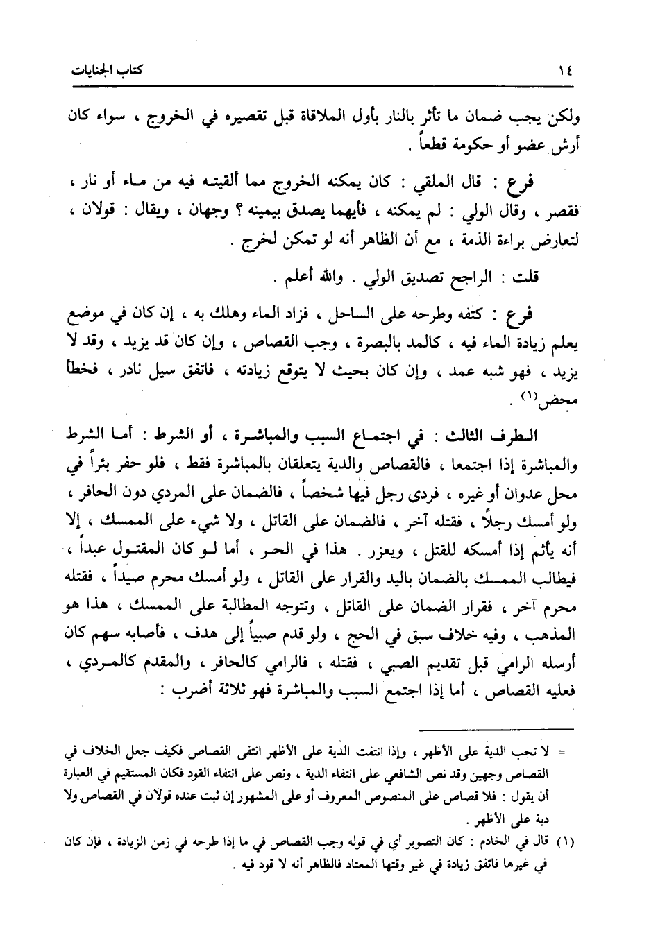 ولكن يجب ضمان ما تأثر بالنار بأول الملاقاة قبل تقصيره في الخروج، سواء كان أرش عضو أو حكومة قطعا. فرع قال الملقي: كان يمكنه الخروج مما ألقيته فيه من ماء أو نار، فقصر، وقال الولي: لم يمكنه، فأيهما يصدق بيمينه ؟ وجهان، ويقال: قولان، لتعارض براءة الذمة، مع أن الظاهر أنه لو تمكن لخرج. قلت: الراجح تصديق الولي. والله أعلم. فرع كتفه وطرحه على الساحل، فزاد الماء وهلك به، إن كان في موضع يعلم زيادة الماء فيه، كالمد بالبصرة، وجب القصاص، وإن كان قد يزيد، وقد لا يزيد، فهو شبه عمد، وإن كان بحيث لا يتوقع زيادته، فاتفق سيل نادر، فخطأ محض.