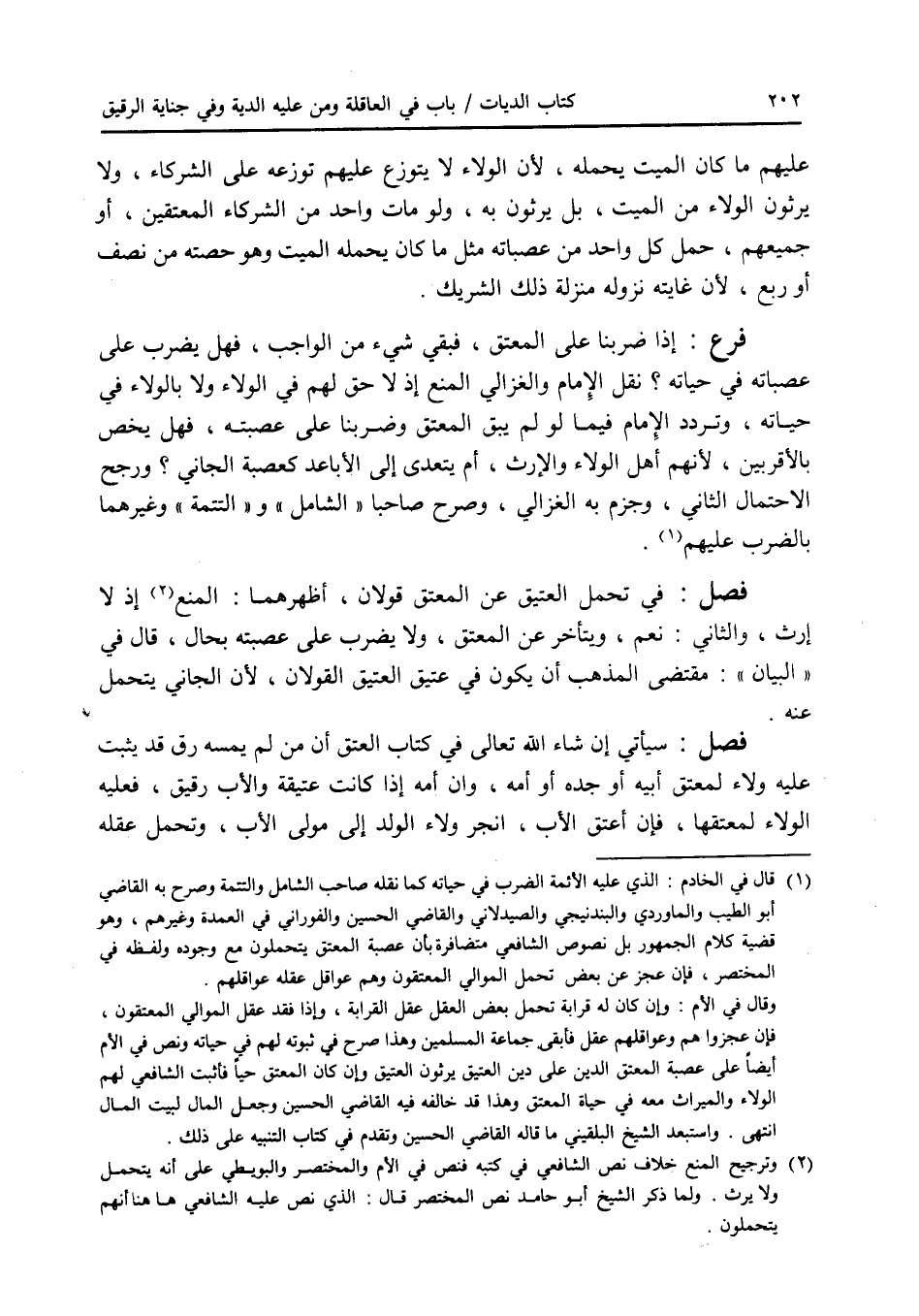 فصل في تحمل العتيق عن المعتق قولان، أظهرهما: المنع إذ لا إرث، والثاني: نعم، ويتأخر عن المعتق، ولا يضرب على عصبته بحال، قال في البيان: مقتضى المذهب أن يكون في عتيق العتيق القولان، لان الجاني يتحمل عنه. فصل سيأتي إن شاء الله تعالى في كتاب العتق أن من لم يمسه رق قد يثبت عليه ولاء لمعتق أبيه أو جده أو أمه، وإن أمه إذا كانت عتيقة والاب رقيق، فعليه الولاء لمعتقها، فإن أعتق الاب، انجر ولاء الولد إلى مولى الاب، وتحمل عقله