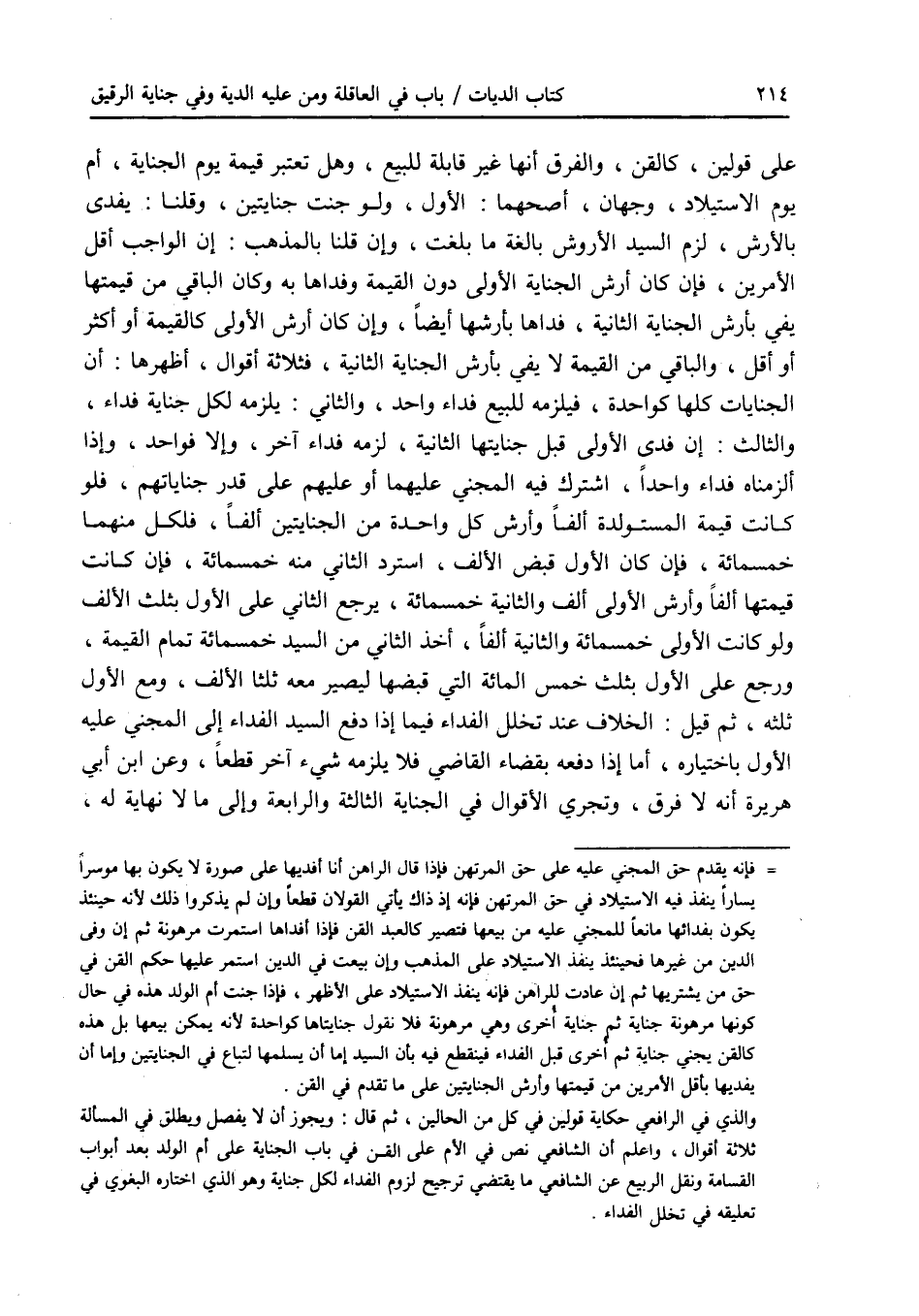 على قولين، كالقن، والفرق أنها غير قابلة للبيع، وهل تعتبر قيمة يوم الجناية، أم يوم الاستيلاد، وجهان، أصحهما: الاول، ولو جنت جنايتين، وقلنا: يفدي بالارش، لزم السيد الاروش بالغة ما بلغت، وإن قلنا بالمذهب: إن الواجب أقل الامرين، فإن كان أرش الجناية الاولى دون القيمة وفداها به وكان الباقي من قيمتها يفي بأرش الجناية الثانية، فداها بأرشها أيضا، وإن كان أرش الاولى كالقيمة أو أكثر أو أقل، والباقي من القيمة لا يفي بأرش الجناية الثانية، فثلاثة أقوال، أظهرها: أن الجنايات كلها كواحدة، فيلزمه البيع فداء واحد، والثاني: يلزمه لكل جناية فداء، والثالث: إن فدى الاولى قبل جنايتها الثانية، لزمه فداء آخر، وإلا فواحد، وإذا ألزمناه فداء واحدا، اشترك فيه المجني عليهما أو عليهم على قدر جناياتهم، فلو كانت قيمة المستولدة ألفا وأرش كل واحدة من الجنايتين ألفا، فلكل منهما خمسمائة، فإن كان الاول قبض الالف، استرد الثاني منه خمسمائة، فإن كانت قيمتها ألفا وأرش الاولى ألف والثانية خمسمائة، يرجع الثاني على الاول بثلث الالف ولو كانت الاولى خمسمائة والثانية ألفا، أخذ الثاني من السيد خمسمائة تمام القيمة، ورجع على الاول بثلث خمس المائة التي قبضها ليصير معه ثلثا الالف، ومع الاول ثلثه، ثم قيل: الخلاف عند تخلل الفداء فيما إذا دفع السيد الفداء إلى المجني عليه الاول باختياره، أما إذا دفعه بقضاء القاضي فلا يلزمه شئ آخر قطعا، وعن ابن أبي هريرة أنه لا فرق، وتجري الاقوال في الجناية الثالثة والرابعة وإلى ما لا نهاية له،