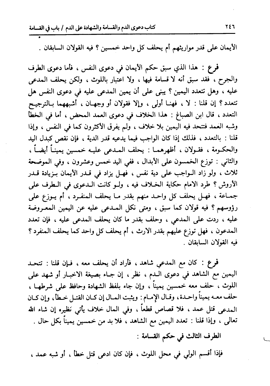الطرف الثالث : في حكم القسامة فإذا أقسم الولي في محل اللوث، فإن كان ادعى قتل خطإ أو شبه عمد،