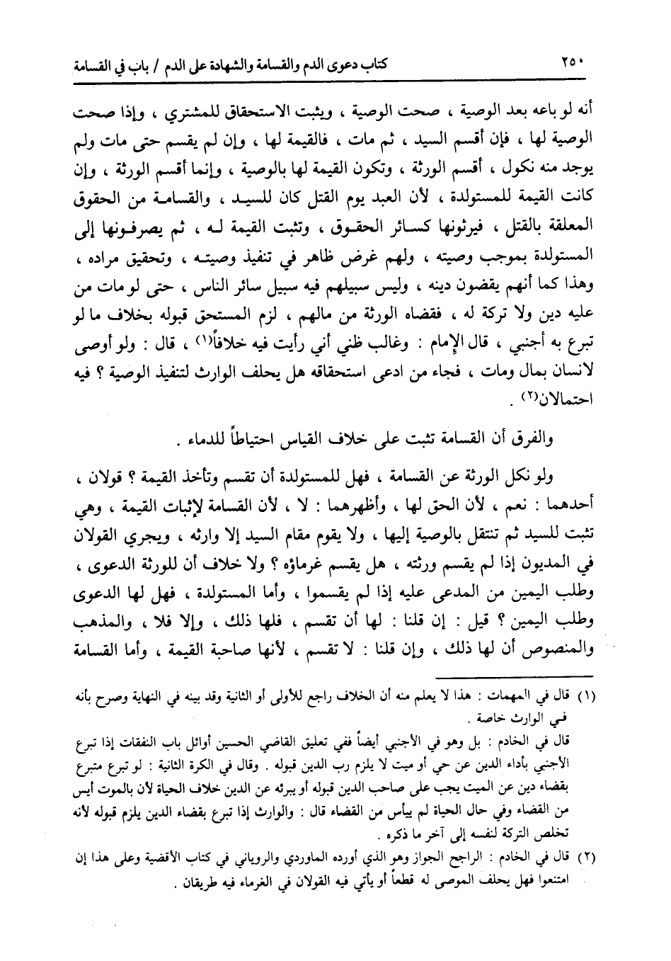 أنه لو باعه بعد الوصية، صحت الوصية، ويثبت الاستحقاق للمشتري، وإذا صحت الوصية لها، فإن أقسم السيد، ثم مات، فالقيمة لها، وإن لم يقسم حتى مات ولم يوجد منه نكول، أقسم الورثة، وتكون القيمة لها بالوصية، وإنما أقسم الورثة، وإن كانت القيمة للمستولدة، لان العبد يوم القتل كان للسيد، والقسامة من الحقوق المعلقة بالقتل، فيرثونها كسائر الحقوق، وتثبت القيمة له، ثم يصرفونها إلى المستولدة بموجب وصيته، ولهم غرض ظاهر في تنفيذ وصيته، وتحقيق مراده، وهذا كما أنهم يقضون دينه، وليس سبيلهم فيه سبيل سائر الناس، حتى لو مات من عليه دين ولا تركة له، فقضاه الورثة من مالهم، لزم المستحق قبوله بخلاف ما لو تبرع به أجنبي، قال الامام: وغالب ظني أني رأيت فيه خلافا، قال: ولو أوصى لانسان بمال ومات، فجاء من ادعى استحقاقه هل يحلف الوارث لتنفيذ الوصية ؟ فيه احتمالان، والفرق أن القسامة تثبت على خلاف القياس احتياطا للدماء. ولو نكل الورثة عن القسامة، فهل للمستولدة أن تقسم وتأخذ القيمة ؟ قولان، أحدهما: نعم، لان الحق لها، وأظهرهما: لا، لان القسامة لاثبات القيمة، وهي تثبت للسيد ثم تنتقل بالوصية إليها، ولا يقوم مقام السيد إلا وارثه، ويجري القولان في المديون إذا لم يقسم ورثته، هل يقسم غرماؤه ؟ ولا خلاف أن للورثة الدعوى، وطلب اليمين من المدعى عليه إذا لم يقسموا، وأما المستولدة، فهل لها الدعوى وطلب اليمين ؟ قيل: إن قلنا: لها أن تقسم، فلها ذلك، وإلا فلا، والمذهب والمنصوص أن لها ذلك، وإن قلنا: لا تقسم، لانها صاحبة القيمة، وأما القسامة