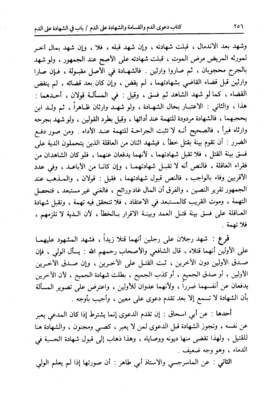 وشهد بعد الاندمال، قبلت شهادته، وإن شهد قبله، فلا، وإن شهد بمال آخر لمورثه المريض مرض الموت، قبلت شهادته على الاصح عند الجمهور، ولو شهد بالجرح محجوبان، ثم صاروا وارثين، فالشهادة في الاصل مقبولة، فإن صارا وارثين قبل قضاء القاضي بشهادتهما، لم يقض، وإن كان بعد قضائه، لم ينقض القضاء، كما لو شهد الشاهد ثم فسق، وقيل: في المسألة قولان، حدهما: هذا، والثاني: الاعتبار بحال الشهادة، ولو شهد وارثان ظاهرا، ثم ولد ابن يحجبهما، فالشهادة مردودة للتهمة عند أدائها، وقيل بطرد القولين، ولو شهد بجرحه وارثاه فبرأ، فالصحيح أنه لا تثبت الجراحة للتهمة عند الاداء. ومن صور دفع الضرر: أن تقوم بينة بقتل خطإ، فيشهد اثنان من العاقلة الذين يتحملون الدية على فسق بينة القتل، فلا تقبل شهادتهما، لانهما يدفعان عنهما، فلو كان الشاهدان من فقراء العاقلة، فالنص أنه لا تقبل شهادتهما، وإن كانا من الاباعد، وفي عدد الاقربين وفاء بالواجب، فالنص قبول شهادتهما، فقيل: قولان، والمذهب عند الجمهور تقرير النصين، والفرق أن المال غاد ورائح، فالغنى غير مستبعد، فتحصل التهمة، وموت القريب كالمستبعد في الاعتقاد، فلا تتحقق فيه تهمة، وتقبل شهادة العاقلة على فسق بينة قتل العمد وبينة الاقرار بالخطإ، لان الدية لا تلزمهم، فلا تهمة. فرع شهد رجلان على رجلين أنهما قتلا زيدا، فشهد المشهود عليهما على الاولين أنهما قتلاه، قال الشافعي والاصحاب رحمهم الله: يسأل الولي، فإن صدق الاولين دون الآخرين، ثبت القتل على الآخرين، وإن صدق الآخرين دون الاولين، أو صدق الجميع، أو كذب الجميع، بطلت شهادة الجميع، لان الآخرين يدفعان عن أنفسهما ضررا، ولانهما عدوان للاولين، واعترض على تصوير المسألة بأن الشهادة لا تسمع إلا بعد تقدم دعوى على معين، وأجيب بأوجه، أحدها عن أبي إسحق: إن تقدم الدعوى إنما يشترط إذا كان المدعي يعبر عن نفسه، وتجوز الشهادة قبل الدعوى لمن لا يعبر، كصبي ومجنون، والشهادة هنا للقتيل، ولهذا تقضى منها ديونه ووصاياه، وهذا ذهاب إلى قبول شهادة الحسبة في الدماء، وهو وجه ضعيف. الثاني عن الماسرجسي والاستاذ أبي طاهر: أن صورتها إذا لم يعلم الولي