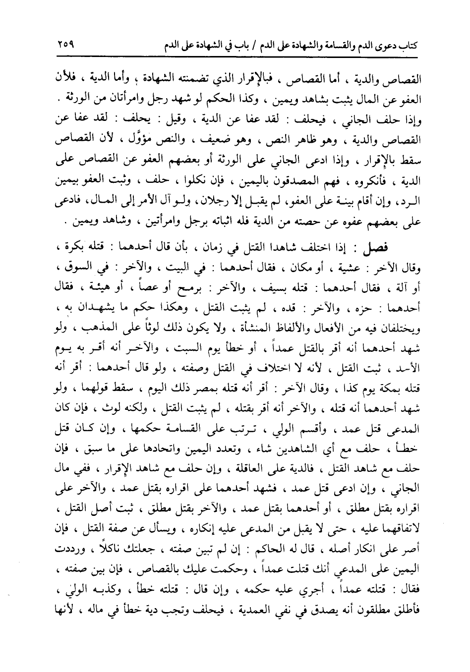 القصاص والدية، أما القصاص، فبالاقرار الذي تضمنته الشهادة، وأما الدية، فلان العفو عن المال يثبت بشاهد ويمين، وكذا الحكم لو شهد رجل وامرأتان من الورثة. وإذا حلف الجاني، فيحلف: لقد عفا عن الدية، وقيل: يحلف: لقد عفا عن القصاص والدية، وهو ظاهر النص، وهو ضعيف، والنص مؤول، لان القصاص سقط بالاقرار، وإذا ادعى الجاني على الورثة أو بعضهم العفو عن القصاص على الدية، فأنكروه، فهم المصدقون باليمين، فإن نكلوا، حلف، وثبت العفو بيمين الرد، وإن أقام بينة على العفو، لم يقبل إلا رجلان، ولو آل الامر إلى المال، فادعى على بعضهم عفوه عن حصته من الدية فله اثباته برجل وامرأتين، وشاهد ويمين. فصل إذا اختلف شاهدا القتل في زمان، بأن قال أحدهما: قتله بكرة، وقال الآخر: عشية، أو مكان، فقال أحدهما: في البيت، والآخر: في السوق، أو آلة، فقال أحدهما: قتله بسيف، والآخر: برمح أو عصا، أو هيئة، فقال أحدهما: حزه، والآخر: قده، لم يثبت القتل، وهكذا حكم ما يشهدان به، ويختلفان فيه من الافعال والالفاظ المنشأة، ولا يكون ذلك لوثا على المذهب، ولو شهد أحدهما أنه أقر بالقتل عمدا، أو خطأ يوم السبت، والآخر أنه أقر به يوم الاحد، ثبت القتل، لانه لا اختلاف في القتل وصفته، ولو قال أحدهما: أقر أنه قتله بمكة يوم كذا، وقال الآخر: أقر أنه قتله بمصر ذلك اليوم، سقط قولهما، ولو شهد أحدهما أنه قتله، والآخر أنه أقر بقتله، لم يثبت القتل، ولكنه لوث، فإن كان المدعى قتل عمد، وأقسم الولي، ترتب على القسامة حكمها، وإن كان قتل خطأ، حلف مع أي الشاهدين شاء، وتعدد اليمين واتحادها على ما سبق، فإن حلف مع شاهد القتل، فالدية على العاقلة، وإن حلف مع شاهد الاقرار، ففي مال الجاني، وإن ادعى قتل عمد، فشهد أحدهما على إقراره بقتل عمد، والآخر على إقراره بقتل مطلق أو أحدهما بقتل عمد، والآخر بقتل مطلق، ثبت أصل القتل، لاتفاقهما عليه، حتى لا يقبل من المدعى عليه إنكاره، ويسأل عن صفة القتل، فإن أصر على إنكار أصله، قال له الحاكم: إن لم تبين صفته، جعلتك ناكلا، ورددت اليمين على المدعي أنك قتلت عمدا، وحكمت عليك بالقصاص، فإن بين صفته، فقال: قتلته عمدا، أجري عليه حكمه، وإن قال: قتلته خطأ، وكذبه الولي، فأطلق مطلقون أنه يصدق في نفي العمدية، فيحلف وتجب دية خطإ في ماله، لانها