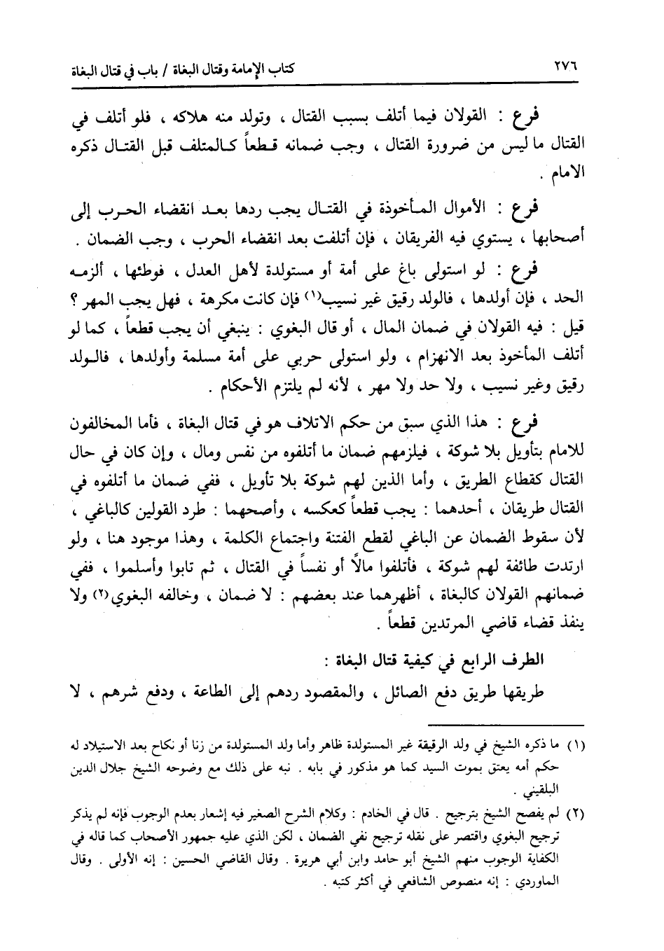 الطرف الرابع : في كيفية قتال البغاة