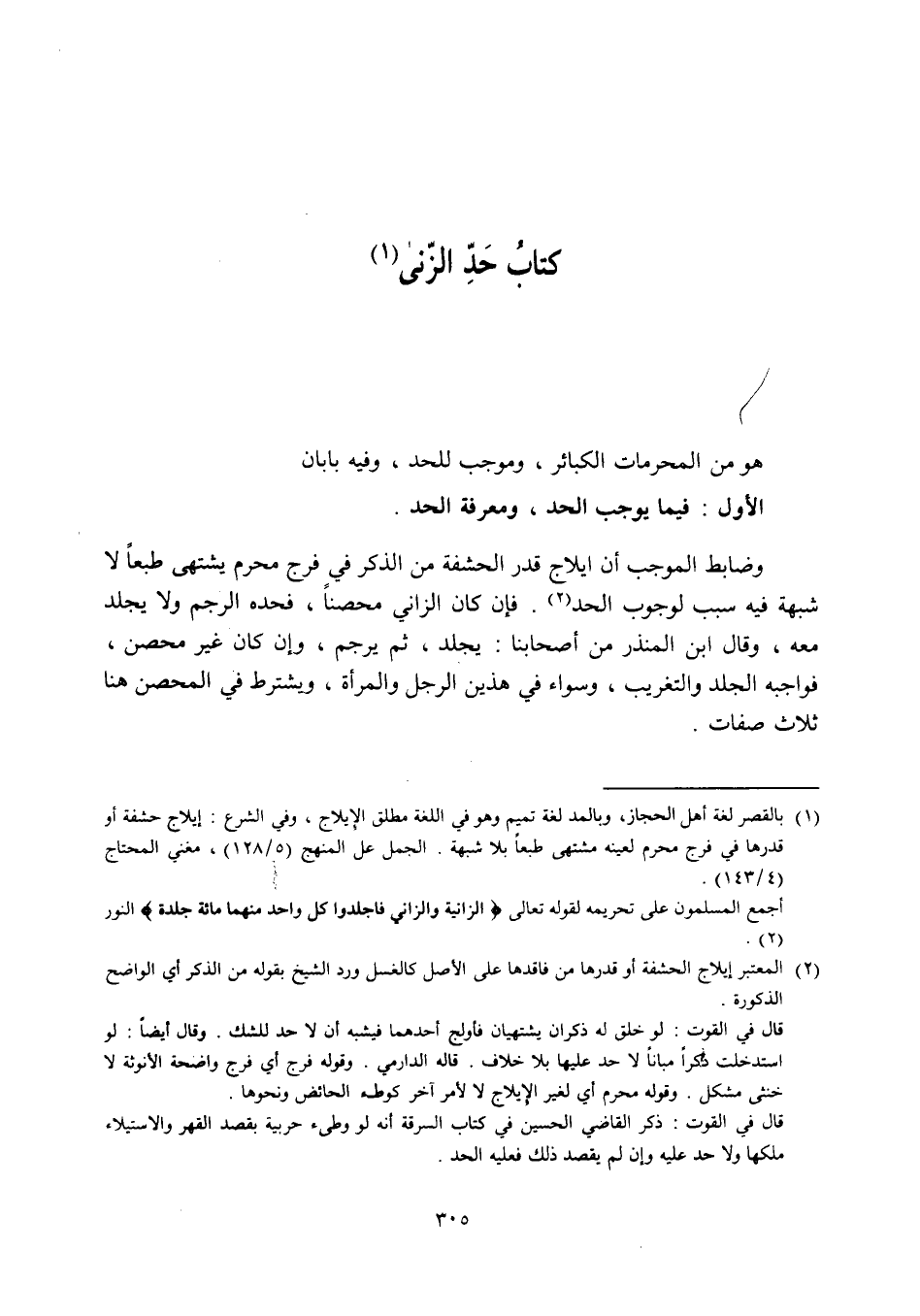 الأول : فيما يوجب الحد، ومعرفة الحد
