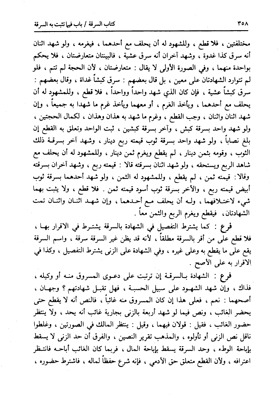 مختلفتين، فلا قطع، وللمشهود له أن يحلف مع أحدهما، فيغرمه، ولو شهد اثنان أنه سرق كذا غدوة، وشهد آخران أنه سرق عشية، فالبينتان متعارضتان، فلا يحكم بواحدة منهما، وفي الصورة الاولى لا يقال: متعارضتان، لان الحجة لم تتم، فلو لم تتوارد الشهادتان على معين، بل قال بعضهم: سرق كبشا غداة، وقال بعضهم: سرق كبشا عشية، فإن كان الذي شهد واحدا وواحدا، فلا قطع، وللمشهود له أن يحلف مع أحدهما، ويأخذ الغرم، أو معهما ويأخذ غرم ما شهدا به جميعا، وإن شهد اثنان واثنان، وجب القطع، وغرم ما شهد به هذان وهذان، لكمال الحجتين، ولو شهد واحد بسرقة كبش، وآخر بسرقة كبشين، ثبت الواحد وتعلق به القطع إن بلغ نصابا، ولو شهد واحد بسرقة ثوب قيمته ربع دينار، وشهد آخر بسرقة ذلك الثوب، وقومه بثمن دينار، لم يقطع ويغرم ثمن دينار، وللمشهود له أن يحلف مع شاهد الربع ويستحقه، ولو شهد اثنان بسرقته وقالا: قيمته ربع، وشهد آخران بسرقته وقالا: قيمته ثمن، لم يقطع، وللمشهود له الثمن، ولو شهد أحدهما بسرقة ثوب أبيض قيمته ربع، والآخر بسرقة ثوب أسود قيمته ثمن، فلا قطع، ولا يثبت بهما شئ لاختلافهما، وله أن يحلف مع أحدهما، وإن شهد اثنان واثنان تمت الشهادتان، فيقطع ويغرم الربع والثمن معا. فرع كما يشترط التفصيل في الشهادة بالسرقة يشترط في الاقرار بها، فلا قطع على من أقر بالسرقة مطلقا، لانه قد يظن غير السرقة سرقة، واسم السرقة يقع على ما يقطع به وعلى غيره، وفي الشهادة على الزنى يشترط التفصيل، وكذا في الاقرار به على الاصح. فرع الشهادة بالسرقة إن ترتبت على دعوى المسروق منه أو وكيله، فذاك، وإنشهد الشهود على سبيل الحسبة، فهل تقبل شهادتهم ؟ وجهان، أصحهما: نعم، فعلى هذا إن كان المسروق منه غائبا، فالنص أنه لا يقطع حتى يحضر الغائب، ونص فيما لو شهد أربعة بالزنى بجارية غائب أنه يحد، ولا ينتظر حضور الغائب، فقيل: قولان فيهما، وقيل: ينتظر المالك في الصورتين، وغلطوا ناقل نص الزنى أو تأولوه، والمذهب تقرير النصين، والفرق أن حد الزنى لا يسقط بإباحة الوطئ، وحد السرقة يسقط بإباحة المال، فربما كان الغائب أباحه فانتظر اعترافه، ولان القطع متعلق حق الآدمي، فإنه شرع حفظا لماله، فاشترط حضوره،