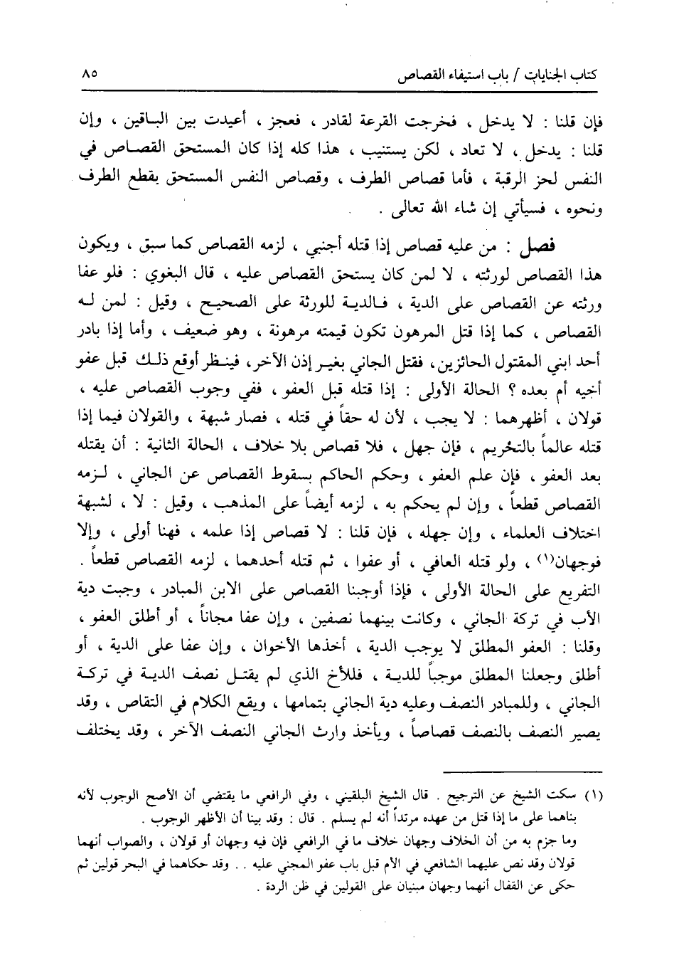 فإن قلنا: لا يدخل، فخرجت القرعة لقادر، فعجز، أعيدت بين الباقين، وإن قلنا: يدخل، لا تعاد، لكن يستنيب، هذا كله إذا كان المستحق القصاص في النفس لحز الرقبة، فأما قصاص الطرف، وقصاص النفس المستحق بقطع الطرف ونحوه، فسيأتي إن شاء الله تعالى. فصل من عليه قصاص إذا قتله أجنبي، لزمه القصاص كما سبق، ويكون هذا القصاص لورثته، لا لمن كان يستحق القصاص عليه، قال البغوي: فلو عفا ورثته عن القصاص على الدية، فالدية للورثة على الصحيح، وقيل: لمن له القصاص، كما إذا قتل المرهون تكون قيمته مرهونة، وهو ضعيف، وأما إذا بادر أحد ابني المقتول الحائزين، فقتل الجاني بغير إذن الآخر، فينظر أوقع ذلك قبل عفو أخيه أم بعده ؟ الحالة الاولى: إذا قتله قبل العفو، ففي وجوب القصاص عليه، قولان، أظهرهما: لا يجب، لان له حقا في قتله، فصار شبهة، والقولان فيما إذا قتله عالما بالتحريم، فإن جهل، فلا قصاص بلا خلاف، الحالة الثانية: أن يقتله بعد العفو، فإن علم العفو، وحكم الحاكم بسقوط القصاص عن الجاني، لزمه القصاص قطعا، وإن لم يحكم به، لزمه أيضا على المذهب، وقيل: لا، لشبهة اختلاف العلماء، وإن جهله، فإن قلنا: لا قصاص إذا علمه، فهنا أولى، وإلا فوجهان، ولو قتله العافي، أو عفوا، ثم قتله أحدهما، لزمه القصاص قطعا. التفريع على الحالة الاولى، فإذا أوجبنا القصاص على الابن المبادر، وجبت دية الاب في تركة الجاني، وكانت بينهما نصفين، وإن عفا مجانا، أو أطلق العفو، وقلنا: العفو المطلق لا يوجب الدية، أخذها الاخوان، وإن عفا على الدية، أو أطلق وجعلنا المطلق موجبا للدية، فللاخ الذي لم يقتل نصف الدية في تركة الجاني، وللمبادر النصف وعليه دية الجاني بتمامها، ويقع الكلام في التقاص، وقد يصير النصف بالنصف قصاصا، ويأخذ وارث الجاني النصف الآخر، وقد يختلف