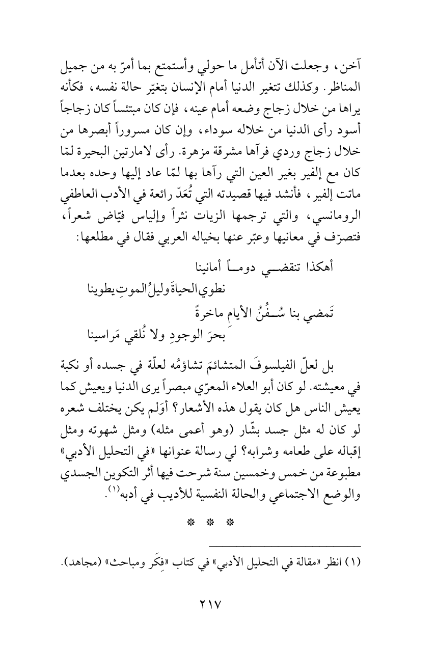 (¬1) انظر «مقالة في التحليل الأدبي» في كتاب «فِكَر ومباحث» (مجاهد).