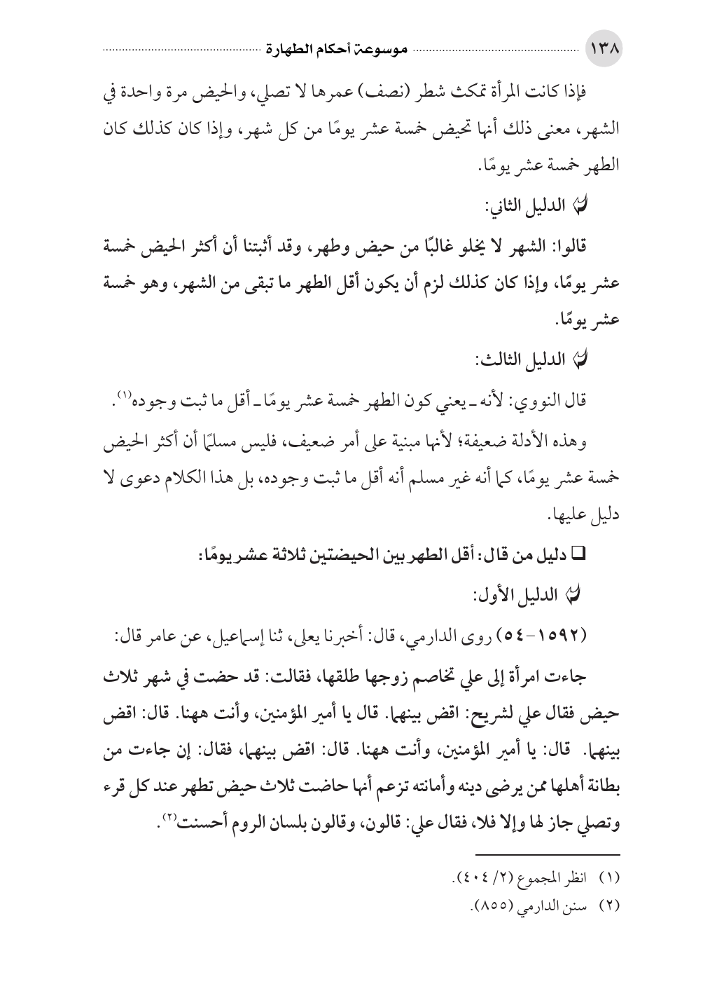قالوا: الشهر لا يخلو غالبًا من حيض وطهر، وقد أثبتنا أن أكثر الحيض خمسة عشر يومًا، وإذا كان كذلك لزم أن يكون أقل الطهر ما تبقى من الشهر، وهو خمسة عشر يومًا.