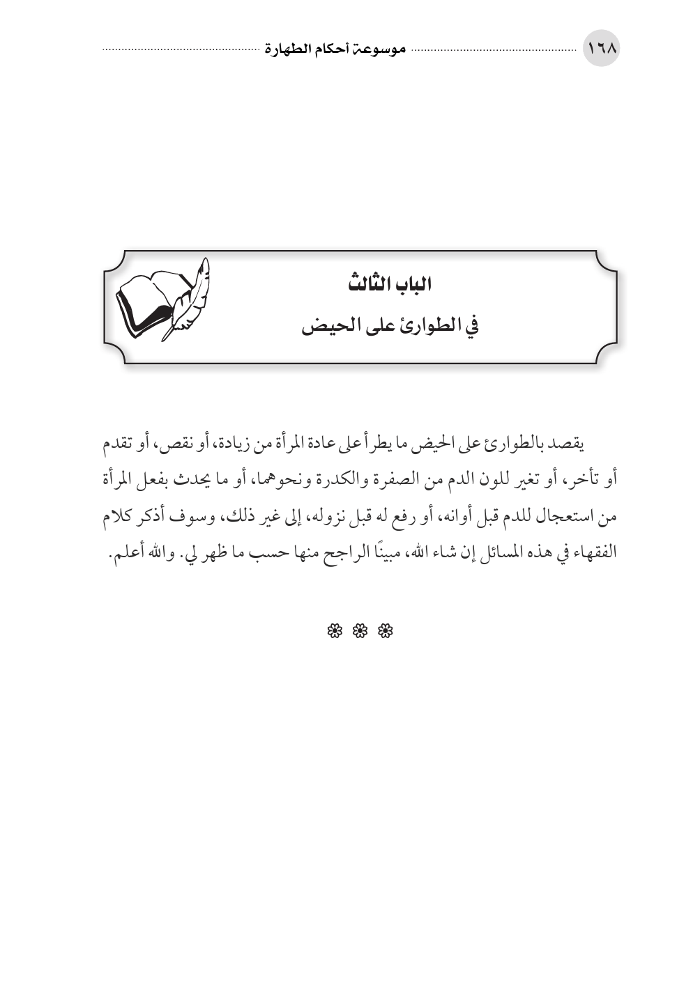يقصد بالطوارئ على الحيض ما يطرأ على عادة المرأة من زيادة، أو نقص، أو تقدم أو تأخر، أو تغير للون الدم من الصفرة والكدرة ونحوهما، أو ما يحدث بفعل المرأة من استعجال للدم قبل أوانه، أو رفع له قبل نزوله، إلى غير ذلك، وسوف أذكر كلام الفقهاء في هذه المسائل إن شاء الله، مبينًا الراجح منها حسب ما ظهر لي. والله أعلم.