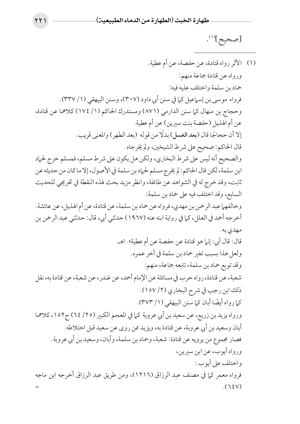 (¬١) الأثر رواه قتادة، عن حفصة، عن أم عطية.