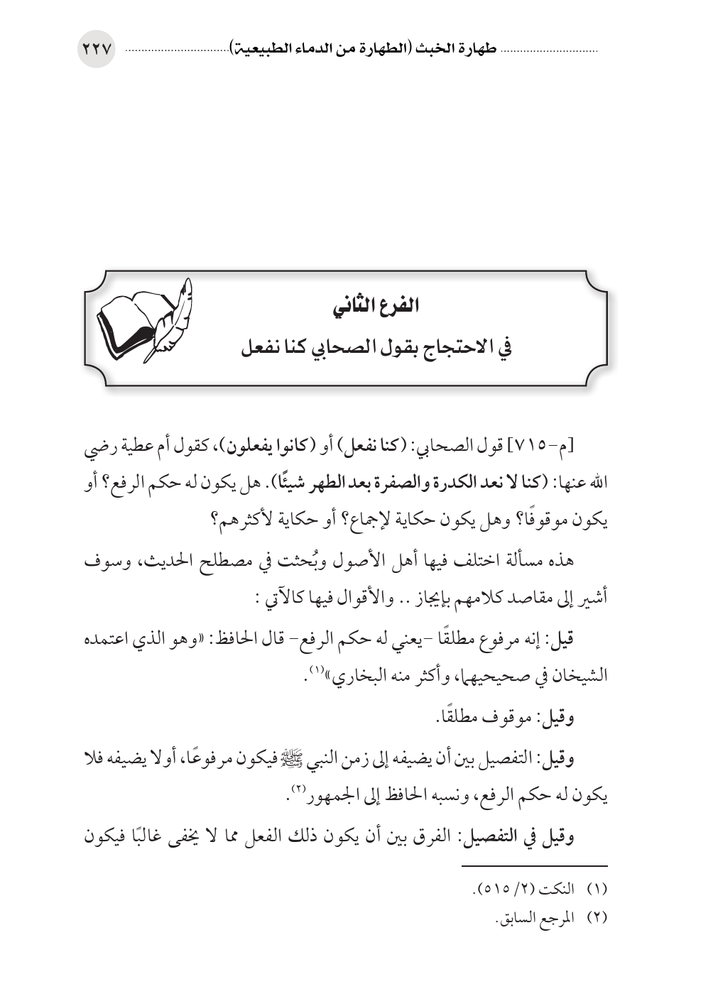 الفرع الثاني في الاحتجاج بقول الصحابي كنا نفعل