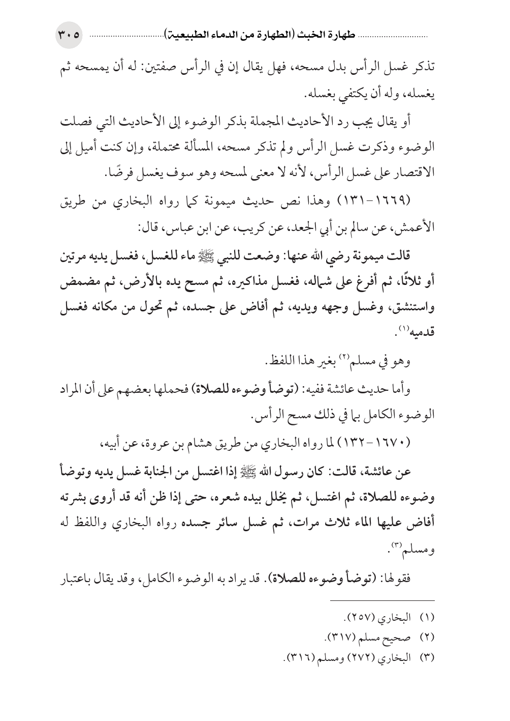 (١٦٦٩ - ١٣١) وهذا نص حديث ميمونة كما رواه البخاري من طريق الأعمش، عن سالم بن أبي الجعد، عن كريب، عن ابن عباس، قال: