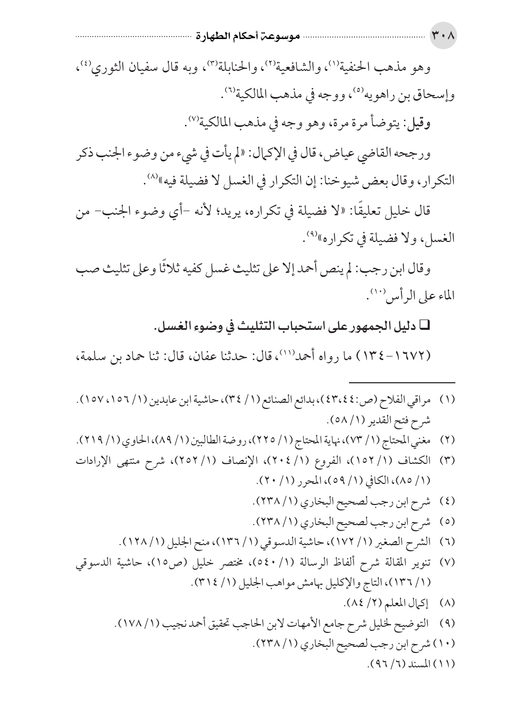 (¬٧) تنوير المقالة شرح ألفاظ الرسالة (١/ ٥٤٠)، مختصر خليل (ص ١٥)، حاشية الدسوقي (١/ ١٣٦)، التاج والإكليل بهامش مواهب الجليل (١/ ٣١٤).