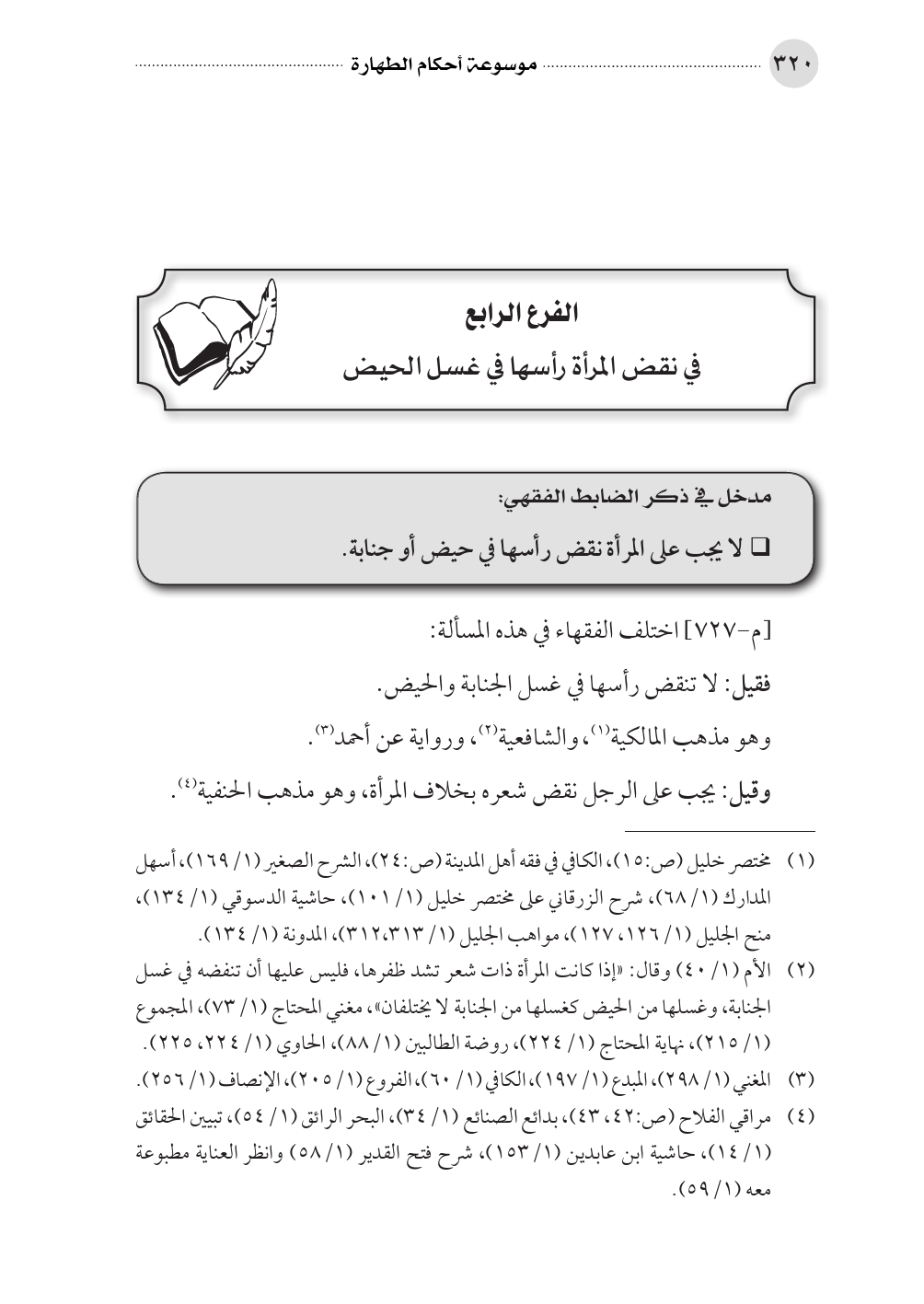 الفرع الرابع في نقض المرأة رأسها في غسل الحيض