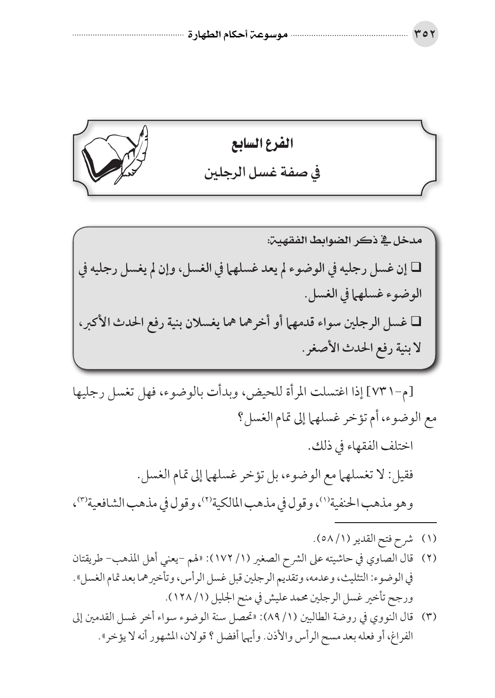 • غسل الرجلين سواء قدمهما أو أخرهما هما يغسلان بنية رفع الحدث الأكبر، لا بنية رفع الحدث الأصغر.