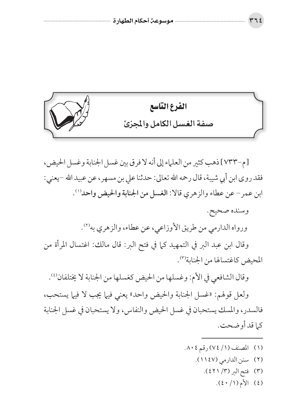 الفرع التاسع صفة الغسل الكامل والمجزئ
