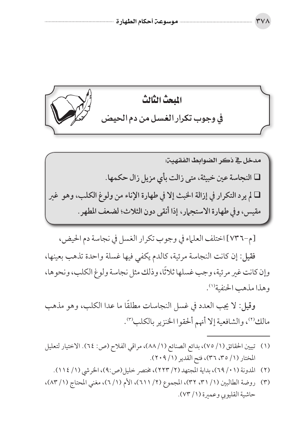 المبحث الثالث في وجوب تكرار الغسل من دم الحيض