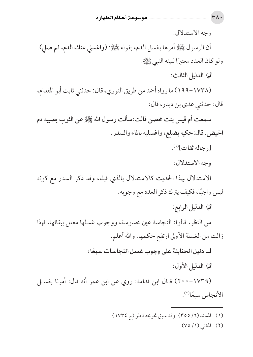 • دليل الحنابلة على وجوب غسل النجاسات سبعًا: