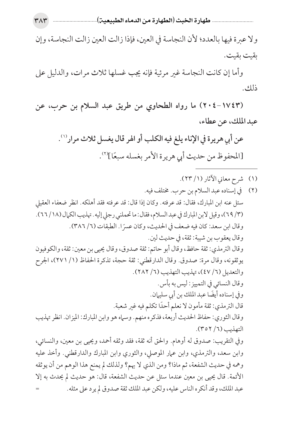 (١٧٤٣ - ٢٠٤) ما رواه الطحاوي من طريق عبد السلام بن حرب، عن عبد الملك، عن عطاء،