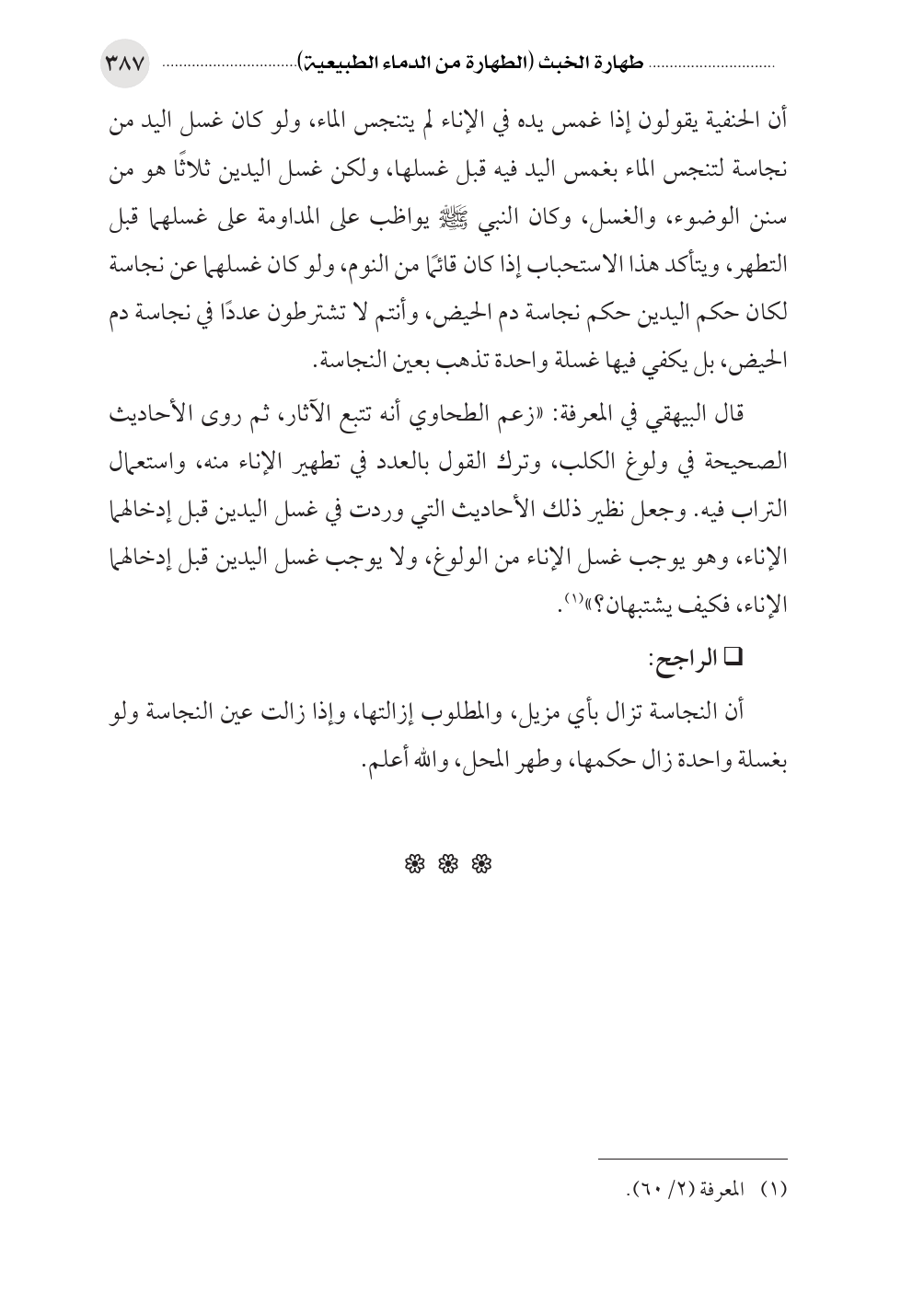 أن الحنفية يقولون إذا غمس يده في الإناء لم يتنجس الماء، ولو كان غسل اليد من نجاسة لتنجس الماء بغمس اليد فيه قبل غسلها، ولكن غسل اليدين ثلاثًا هو من سنن الوضوء، والغسل، وكان النبي صلى الله عليه وسلم يواظب على المداومة على غسلهما قبل التطهر، ويتأكد هذا الاستحباب إذا كان قائمًا من النوم، ولو كان غسلهما عن نجاسة لكان حكم اليدين حكم نجاسة دم الحيض، وأنتم لا تشترطون عددًا في نجاسة دم الحيض، بل يكفي فيها غسلة واحدة تذهب بعين النجاسة.