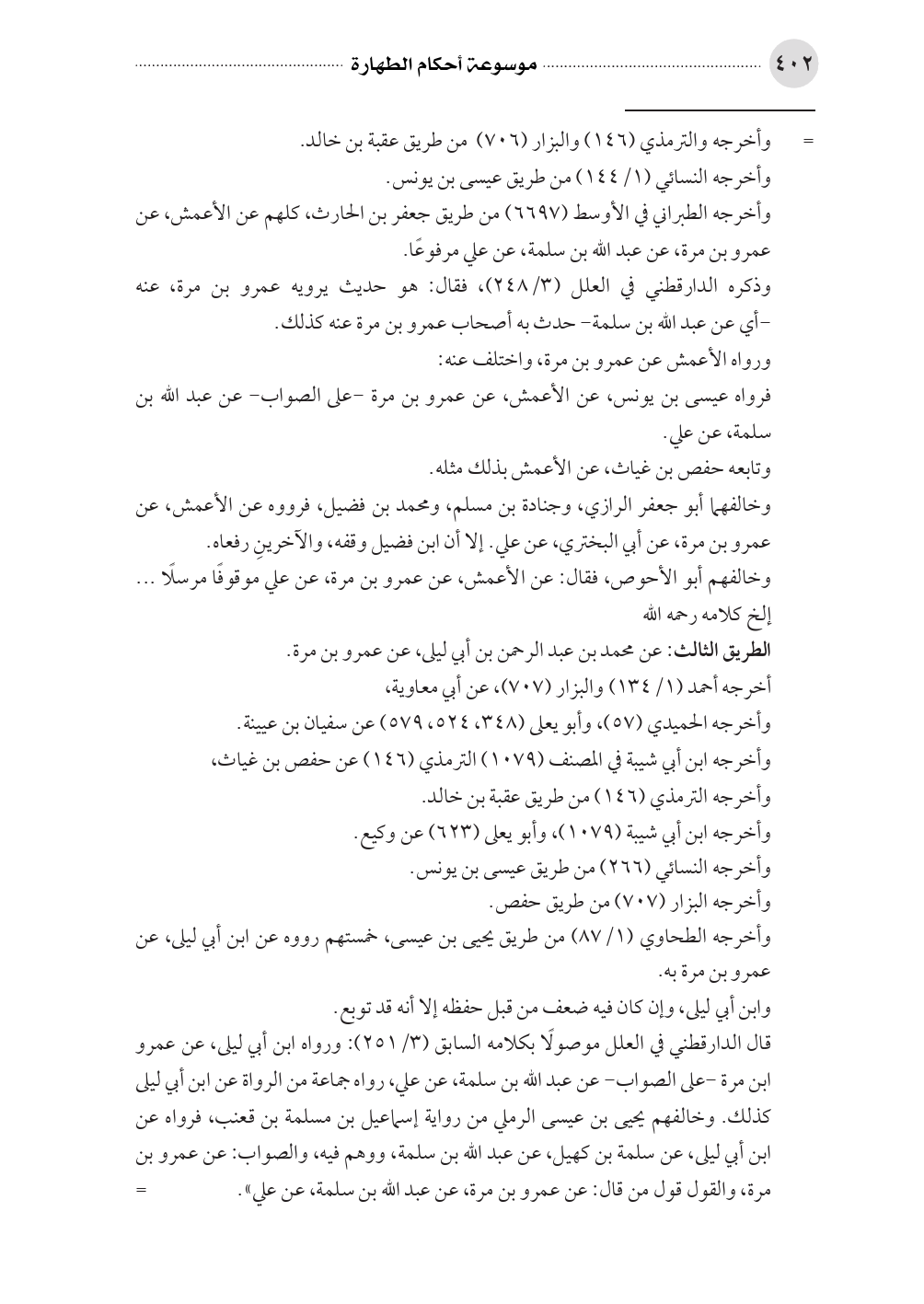 الطريق الثالث: عن محمد بن عبد الرحمن بن أبي ليلى، عن عمرو بن مرة.