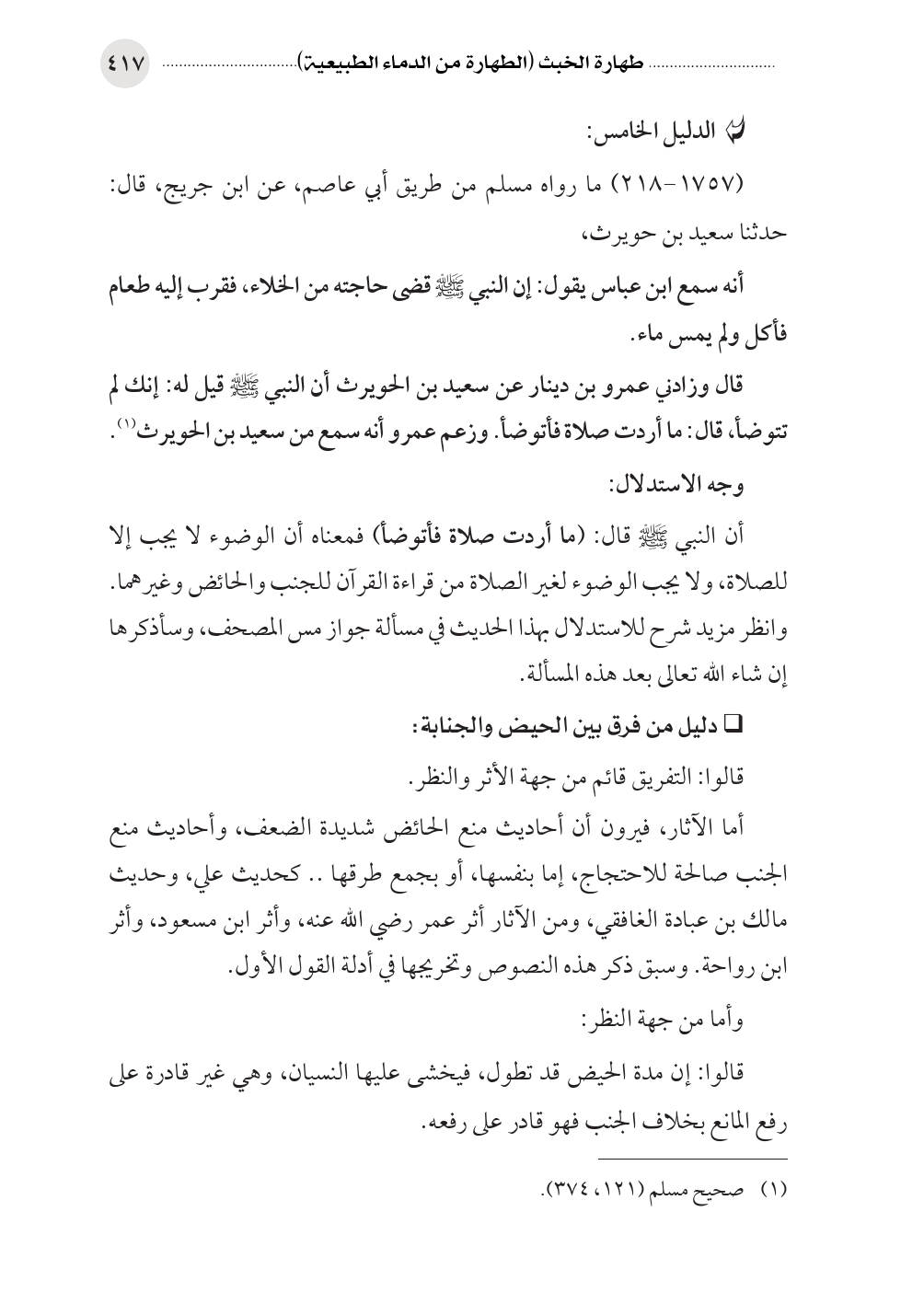 • دليل من فرق بين الحيض والجنابة: