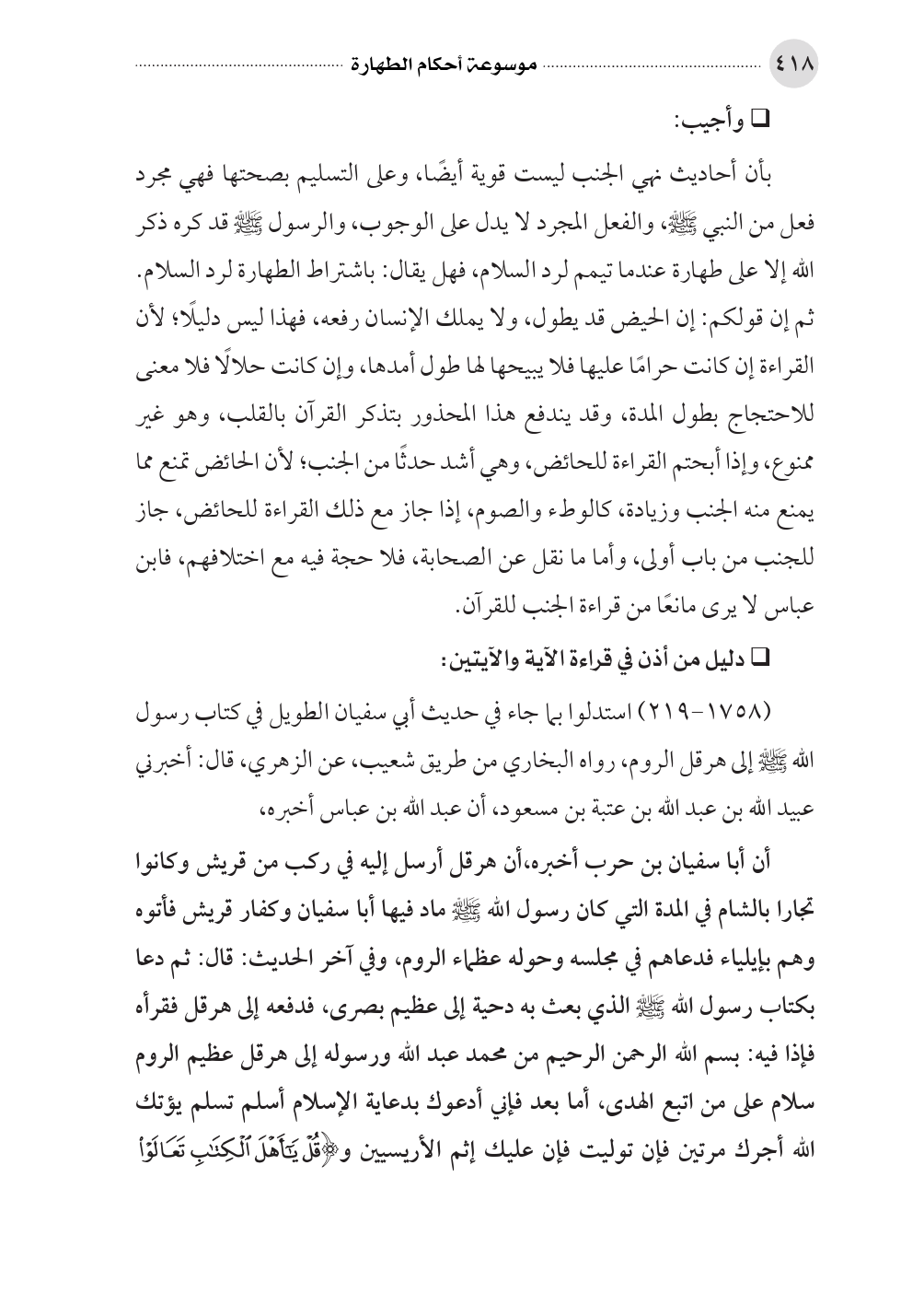 (١٧٥٨ - ٢١٩) استدلوا بما جاء في حديث أبي سفيان الطويل في كتاب رسول الله صلى الله عليه وسلم إلى هرقل الروم، رواه البخاري من طريق شعيب، عن الزهري، قال: أخبرني عبيد الله بن عبد الله بن عتبة بن مسعود، أن عبد الله بن عباس أخبره،