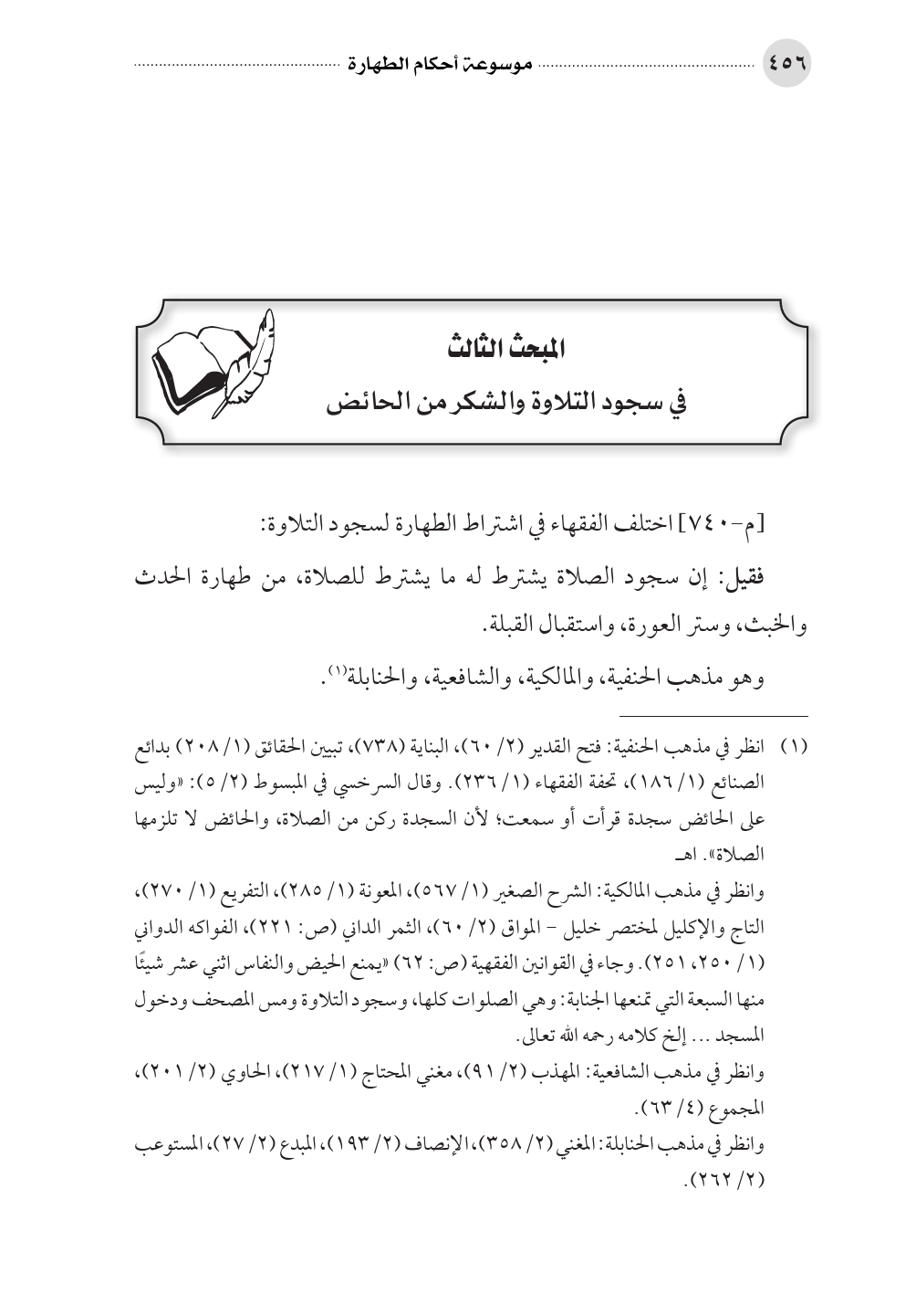 المبحث الثالث في سجود التلاوة والشكر من الحائض