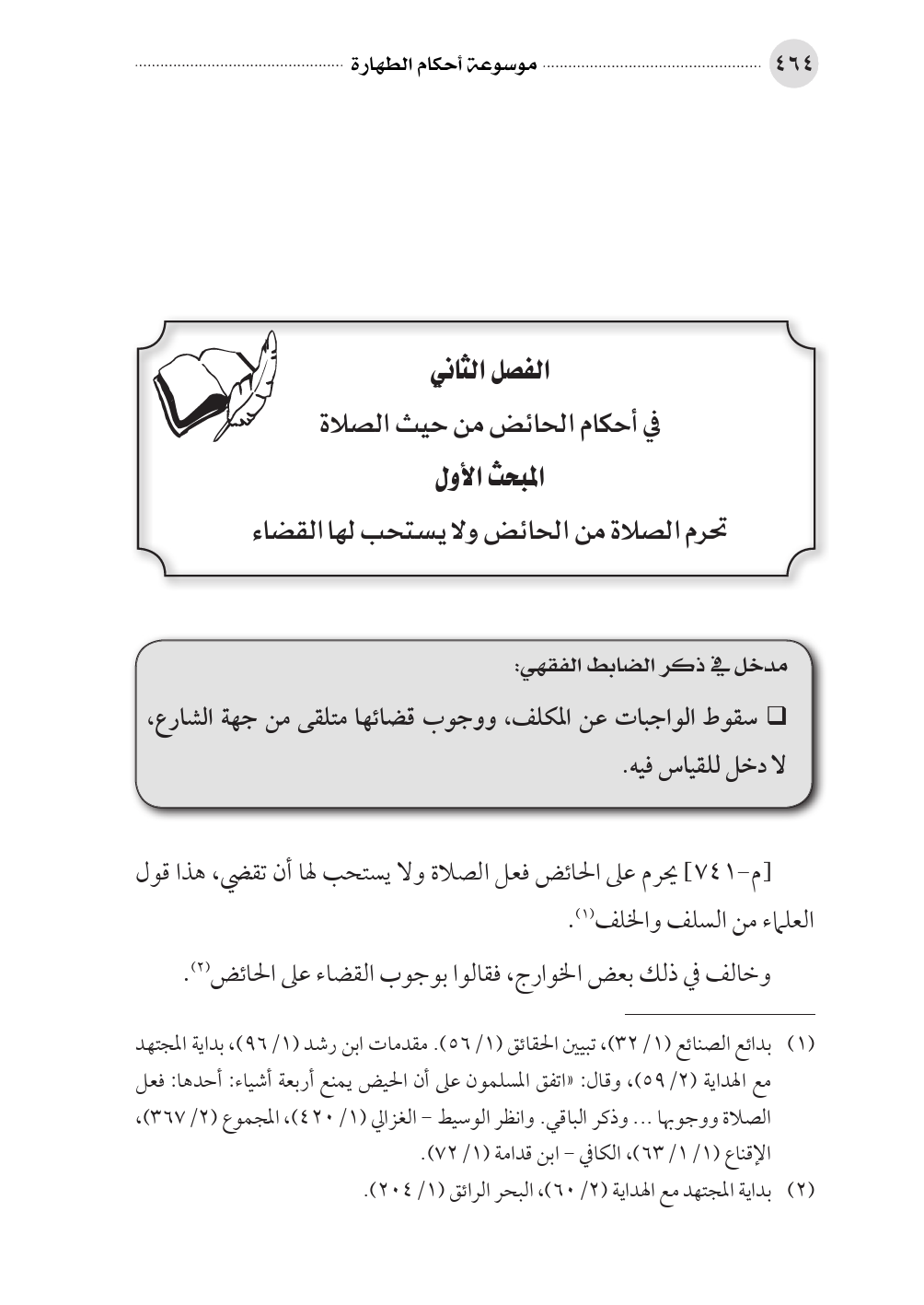 (¬١) بدائع الصنائع (١/ ٣٢)، تبيين الحقائق (١/ ٥٦). مقدمات ابن رشد (١/ ٩٦)، بداية المجتهد مع الهداية (٢/ ٥٩)، وقال: «اتفق المسلمون على أن الحيض يمنع أربعة أشياء: أحدها: فعل الصلاة ووجوبها ... وذكر الباقي. وانظر الوسيط - الغزالي (١/ ٤٢٠)، المجموع (٢/ ٣٦٧)، الإقناع (١/ ١/٦٣)، الكافي - ابن قدامة (١/ ٧٢).