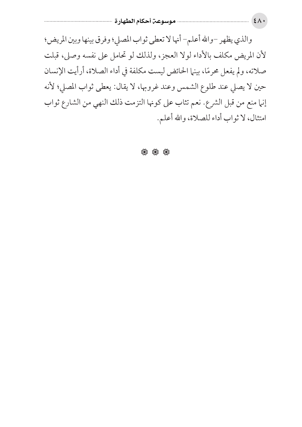 والذي يظهر -والله أعلم- أنها لا تعطى ثواب المصلي؛ وفرق بينها وبين المريض؛ لأن المريض مكلف بالأداء لولا العجز، ولذلك لو تحامل على نفسه وصلى، قبلت صلاته، ولم يفعل محرمًا، بينما الحائض ليست مكلفة في أداء الصلاة، أرأيت الإنسان حين لا يصلي عند طلوع الشمس وعند غروبها، لا يقال: يعطى ثواب المصلي؛ لأنه إنما منع من قبل الشرع. نعم تثاب على كونها التزمت ذلك النهي من الشارع ثواب امتثال، لا ثواب أداء للصلاة، والله أعلم.