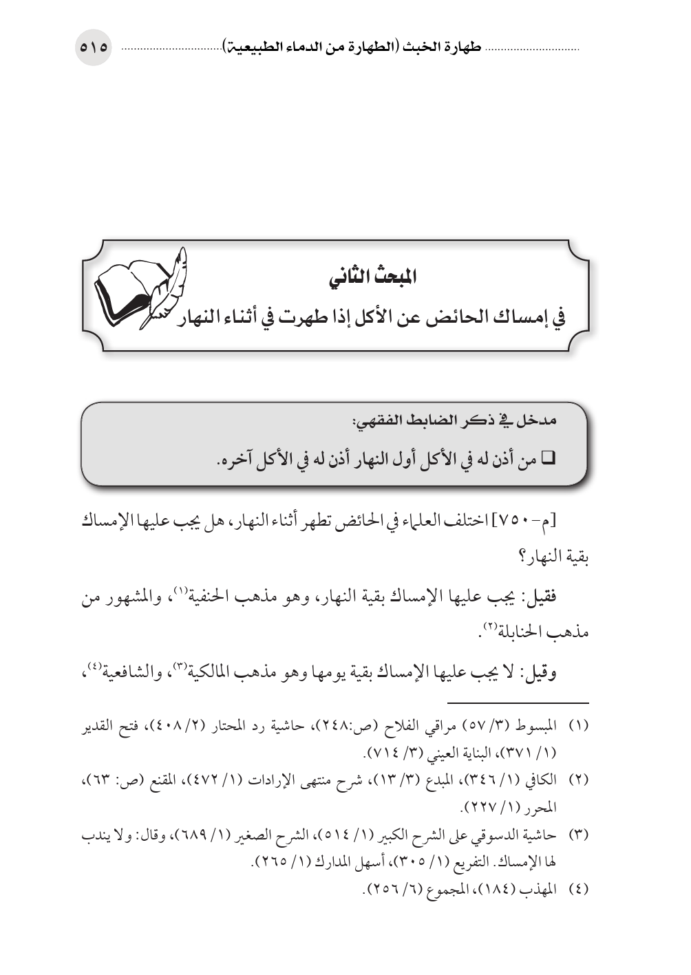 المبحث الثاني في إمساك الحائض عن الأكل إذا طهرت في أثناء النهار