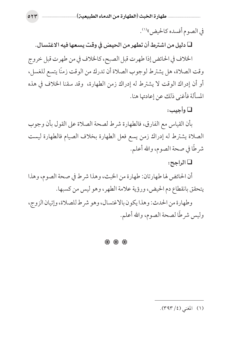 • دليل من اشترط أن تطهر من الحيض في وقت يسعها فيه الاغتسال.