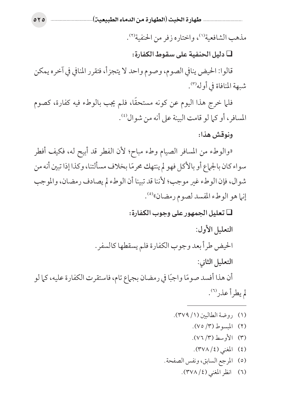 قالوا: الحيض ينافي الصوم، وصوم واحد لا يتجزأ، فتقرر المنافي في آخره يمكن شبهة المنافاة في أوله (¬٣).