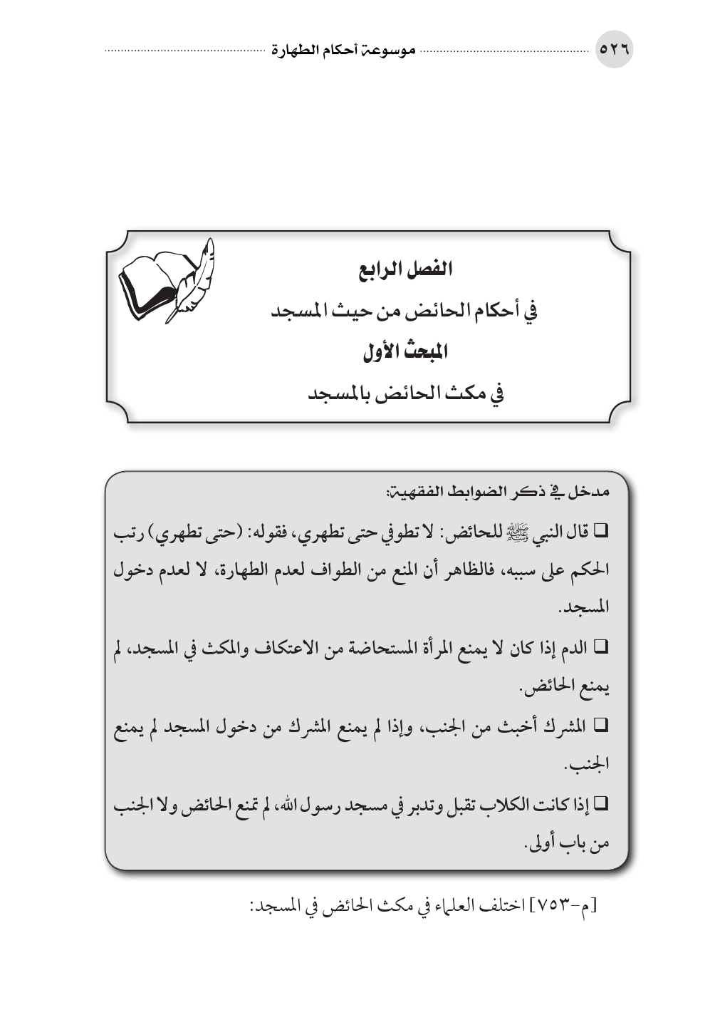 الفصل الرابع في أحكام الحائض من حيث المسجد