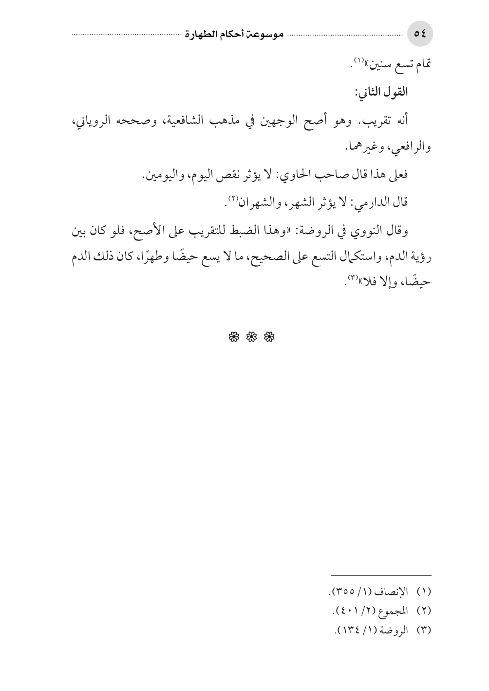 وقال النووي في الروضة: «وهذا الضبط للتقريب على الأصح، فلو كان بين رؤية الدم، واستكمال التسع على الصحيح، ما لا يسع حيضًا وطهرًا، كان ذلك الدم حيضًا، وإلا فلا» (¬٣).